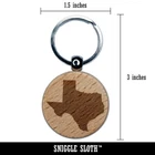 Texas State Silhouette Engraved Wood Round Keychain Tag Charm