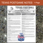 Arizona State vs Texas College Football Playoff, Round Two - Peach Bowl Game History! For sale, the game issued Flipcard and the media issued Postgame program notes (26-pages!) - given to the media after the game. Only given to media and broadcast for the game. What You Get: Game Issued Flipcard - (Double Sided) NCAA Final Scorebook & Game Stats (20-pages) - 8.5x11" Texas Postgame Notes (1-page) - 8.5x11" Arizona State Postgame Notes (5-pages) - 8.5x11" Rigid Plastic protector - 11x17" GAME INFORMATION: GAME: CFP - Round Two - Arizona State vs Texas DATE: Jan 1, 2025 TEAMS: Arizona State vs Texas STADIUM: Mercedes-Benz Stadium LOCATION: Atlanta, GA ** WHY FLIPCARDS? I n the world in which there are no longer printed tickets and programs available, game Flipcards are really the only printed game item document left. They are the new take-home ticket. They provide all the game info like a ticket, but you also get rosters and other unique information to the game. Plus, they look awesome and are easy to display, show off! If you are looking for a ticket or program from the game, the media flipcard is better than both. It truly tells the story of the historic game. ** ** WHAT IS A FLIPCARD ACTUALLY USED FOR BY MEDIA AND BROADCAST? Flipcards actually play an important part in the game for media and broadcast. The large, oversized 11x17 double-sided information allows the broadcaster know and recognize the names and numbers of the players. Something challenging due to the far-away view from the press-box. Also, with the sheer amount of players on the field, media and broadcast need an easy one-stop shop for both teams rosters and information. ** HOW LONG HAVE FLIPCARDS BEEN USED? Flipcards have been used on-field going all the way back to the 1960's for media and broadcast. Flipcards are probably the last unique game-day item printed for ever game today in 2024. Seriously.