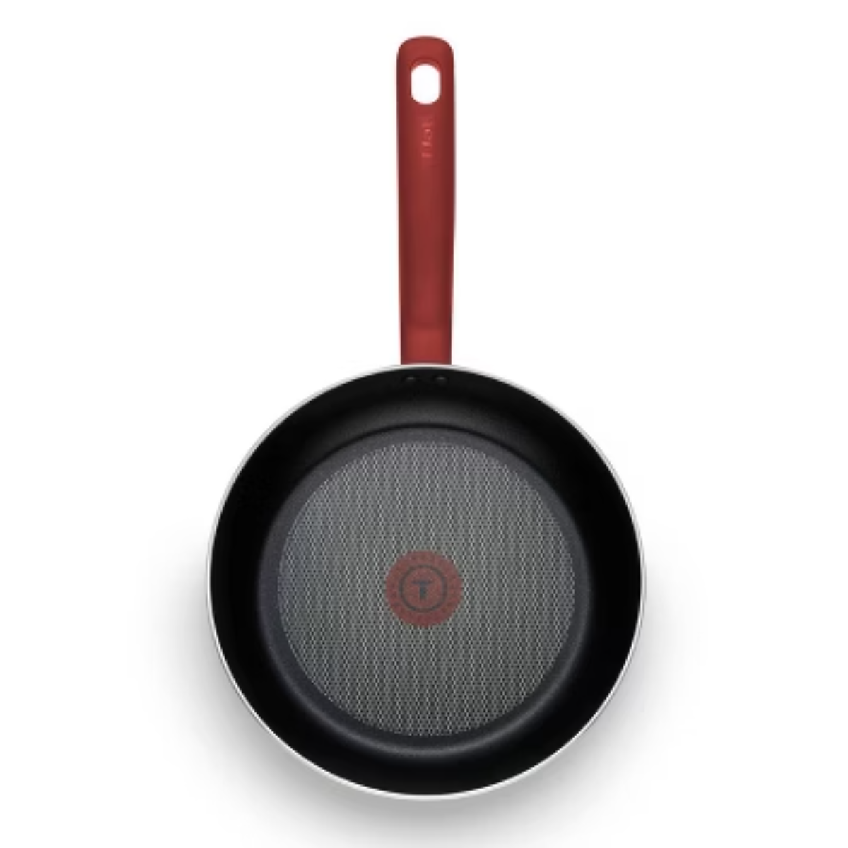 Description This Simply Clean Saute Pan from T-Fal is the perfect addition to your cookware collection. The non-stick frying pan has a round, flat base that delivers even heat distribution for reliable results, regardless of what food you are sauteing, scrambling or frying. Made with durable aluminum and a dishwasher-safe design for easy cleaning, you can saute up some colorful veggies easily in this even-heating frying pan. highlights Thermo-spot heat indicator clearly shows when the pan is perfectly preheated Durable aluminum construction and superior non-stick design makes for fuss free, clean cooking Dishwasher-safe design makes for easy and quick clean up Features stay-cool, comfort-grip ergonomic handle to make cooking a breeze