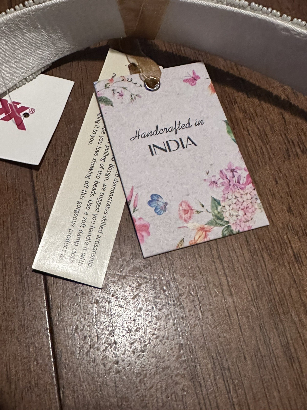 The Th maxx NWT Beaded Lobster Shoulder Bag is a stylish and unique accessory for women, featuring a rectangular shape and a fabric lining. Made in India, this ivory shoulder bag with beaded exterior and accents showcases a shell theme, making it a perfect choice for those looking to add a touch of elegance to their outfit. With its eye-catching design and quality construction, this bag is sure to be a standout piece in any wardrobe.