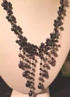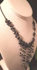 This exquisite Busarin necklace features a stunning waterfall design with 50 black pearls and onyx gemstones. The necklace is handcrafted in Thailand and boasts a chic fringe, statement bib, and beaded choker style. The necklace's closure is a lobster clasp, and its braided chain is made of stainless steel. The necklace's black color and baroque shape make it a perfect complement to any outfit. The necklace's beauty is inspired by nature, art, and beach styles, making it a versatile and unique piece. The necklace comes unsigned and is perfect for anyone who loves bohemian, ethnic, and fashionable jewelry.
