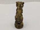 Thai Sitting Tiger Amulet Talisman Mini Metal Pendant Statue Figurine. Approximately 1 Inch Tall. It has a loop on the back of the neck for hanging, the loop leans a little to one side. Very good condition. Please check out the photos to see the item in detail.