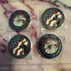 This set of four challenge coins is a must-have for any militaria collector or enthusiast. Each coin features the phrase "Thank You For Your Service" and unique imagery related to military service. These coins are original and brand new, ready to add to your collection. The coins in this set are perfect for displaying or giving as gifts to a military service member or veteran. The "Original/Reproduction" aspect of this set is "Original," and the "Theme" aspect is "Militaria." These coins fall under the categories of "Collectibles," "Militaria," "Current Militaria (2001-Now)," "Original Items," and "Challenge Coins." Add this unique coin to your collection today and give the remaining 3, to fellow service members and veterans.