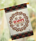 Thanksgiving Wreath House Flag Set Fall Turkey Give Thanks Gobble Pumpkin Sea...