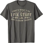 That's What I Do I Fix Stuff And I Know Things Funny Men Dad T-Shirt Designed and Printed in USA Product Features: • Classic Look and Feel: This ultra cotton tee offer the timeless appeal of traditional cotton. The high-quality print enhances its casual appearance. • Material: Made from 6.1-ounce, 100% cotton. (Note: Dark Heather variant is 50% cotton, 50% polyester.) • Durability: Features double-needle stitching on the neck, sleeves, and hem for added durability. Designed for a roomy, unisex fit. • Print Type: DTG (Direct to Garment) • Manufacturer: Gildan 5000, 5000b (Made in USA) Shipping Information: • Handling Time: With POD(Print-On-Demand) product model, we typically require about 3 business-days handling time before shipping. In most cases, our handling time’s , rang e from 1-2 business days. • Delivery Time: • USA: Approximately 2 -6 business days • Canada: Approximately 6-10 business days (We currently don’t offer international Shipping) • Worldwide: Approximately 15-25 business days (We Currently don’t offer international Shipping) • Shipping Carriers: USPS and DHL • Note: Business days exclude weekends and holidays. Return & Exchange Policy: • Quality Guarantee: We stand behind the quality of our products and workmanship . Any defects or errors on our part must result in a refund/ replacement at no charge. • Conditions for Returns: Returns are generally not accepted for user errors such as incorrect selection of sizes, designs, or colors. Returns /Replacements are acceptable for damages such as poor printing results, incorrect size or design caused by us. • Note: Please reach out to us if there are any questions or issue s with your item, we’ll do our best to resolve any issue you might have. Note: • We’re glad to have your support! If you have a moment, y our honest feedback is very valuable to us. Thank you!