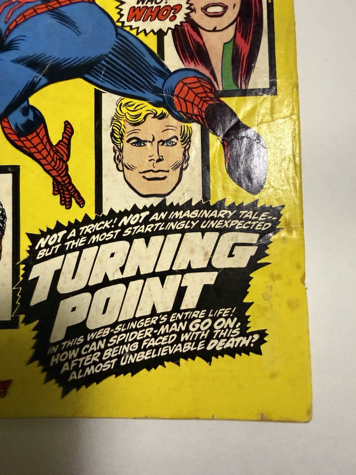 Amazing Spider-Man #121 Key info: Death of Gwen Stacy Grade: 4.5 VG+ Notes: spine stress, multiple bends to front and back cover, staining front cover/interior page/back cover, hole near top staple soft corners Socials: ItsAliveComicsNYC