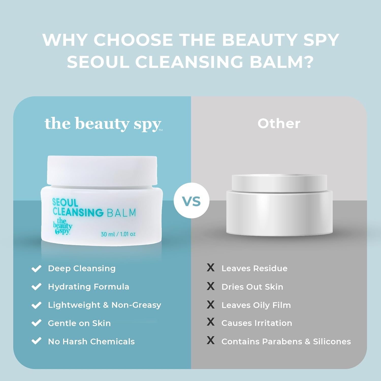 Deep Cleansing Made Luxurious: Our 3-in-1 makeup melting balm transforms into a luxurious oil, effortlessly removing makeup, SPF, and impurities to leave your skin pristine and refreshed. Hydrating and Soothing Formula: Infused with Ginseng and Green Tea, our face balm cleanser hydrates and soothes your skin, ensuring a soft, moisturized complexion without leaving any greasy residue. Sensitive Skin Friendly: Designed for the gentle care of your skin, our makeup cleansing balm is free from parabens, silicones, and mineral oil, making it ideal for dry and sensitive skin types. Effortless Rinse-Off: Designed for convenience, our oil-based make up remover balm transitions smoothly from balm to oil, washing off easily without leaving any residue, ideal for daily use. Essence of K-Beauty: From the heart of South Korea’s beauty innovation, The Beauty Spy brings you a cleanser developed with traditional wisdom and modern technology, ensuring top-tier skincare performance. Experience the transformative skincare ritual with The Beauty Spy’s Seoul Cleansing Balm-to-Oil makeup remover. This luxurious oil based cleanser melts into a silky oil upon application, effortlessly dissolving stubborn makeup, sunscreen, and daily impurities without stripping your skin’s natural oils. Infused with ginseng and green tea extracts, it nurtures skin hydration, leaving your complexion soft, clean, and radiant. The subtle citrus aroma elevates the cleansing experience, making it a refreshing daily ritual. How to Use: Scoop a small amount with dry fingertips and apply to dry skin. Massage in circular motions to break down makeup and impurities. Rinse thoroughly with lukewarm water or wipe off with a damp cloth for clear, nourished skin. About The Beauty Spy: Founded by Chelsea Scott during her travels across South Korea, The Beauty Spy brings innovative K-beauty trends directly to you. Our mission is to uncover exceptional beauty products that enhance both your routine and well-being. Chelsea’s passion for discovery ensures that The Beauty Spy delivers products that promise authenticity and efficacy. Transform your skincare routine with our Korean cleansing balm designed for all skin types, including dry and sensitive. Its non-greasy formula ensures a smooth, clean finish, making it ideal for anyone seeking a thorough cleanse that also moisturizes and revitalizes the skin. Indulge in the ultimate cleansing experience with The Beauty Spy’s makeup removing balm. Perfect for those on the go, this travel size makeup remover ensures you maintain flawless skin wherever life takes you. Shop now and discover the difference of a cleanser that works as hard as you do to maintain glowing, healthy skin.