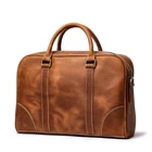 The Bjorn Leather Laptop Bag is mature in style and efficient in service. A perfect combination of shoulder bag and briefcase that provides comfort to the wearer and the capacity for all storage needs. This bag is sturdy, made of high-quality leather, and is capable of carrying securely, valuable gadgets, laptops up to 14 inches, as well as any further items. Not only is this briefcase highly functional, but its classy in appearance, the elder statesmen of leather bags that looks like it belongs in any environment; allowing the owner to carry it confidently into any occasion, formal or not. Featuring thick and durable straps that are comfortable on the shoulders, along with quality stitching throughout. Whether you are looking for a briefcase or laptop bag, then look no further. Get that professional look with the gift that keeps on giving all year long. Material & Dimensions: Made of high-quality crazy horse leather Dimensions: 15" x 11" x 4.3" (39cm x 28cm x 11cm) Weight: 3.7 lbs (1.2 kg) Shoulder Strap: 53.1"(135cm) Features: Exterior: Modern Exterior Finish Interior: 1 large zippered compartment. 2x phone compartments, 1x sleeve Carrying: Leather-lined comfortable grab handle made from high-quality material. Wear-proof and durable. Ergonomically-designed adjustable straps distribute weight evenly across the back. Two carrying options : Grab handle and adjustable shoulder straps What Fits: 14" Size - Laptop Compartment Please note that this bag is made of natural material, therefore each bag is unique with a slightly differe