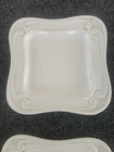The Cellar Square Salad Plates Size: 7.5" Square. Lot of 4. Features & Accents: White, Scroll in corners, Square, Luncheon Plates, Macy's The Cellar 2003. Ceramic. Condition. Pre owned, Very nice. Clean. Smoke Free Home. Same day shipping if purchased by 3:00 PM, EST. International Sales Ship through Ebay International Shipping Program. Free Returns. We truly try to disclose all information on items we list. However if we miss something, please contact us before leaving negative feedback and allow us to resolve the problem or issue a returns. Your choice. Thank you.