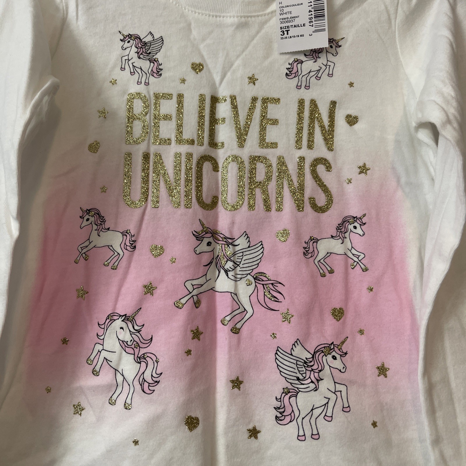 The Children’s Place Girls 2t Ivory Unicorn Glitter Long-Sleeve Shirt NWT! A2079
