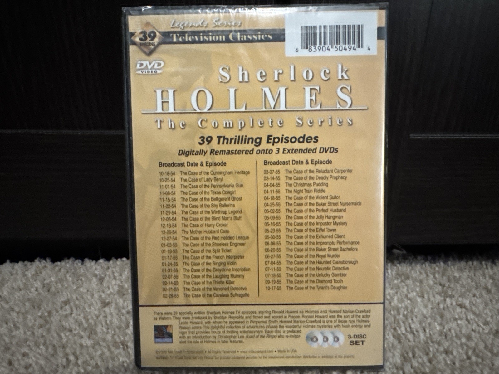 "The Complete Sherlock Holmes Collection" on DVD is a comprehensive set featuring all the classic mysteries and suspense-filled adventures of the iconic detective Sherlock Holmes. Directed by various talented filmmakers, this collection offers a 39 episodes, providing hours of entertainment for fans of the genre.