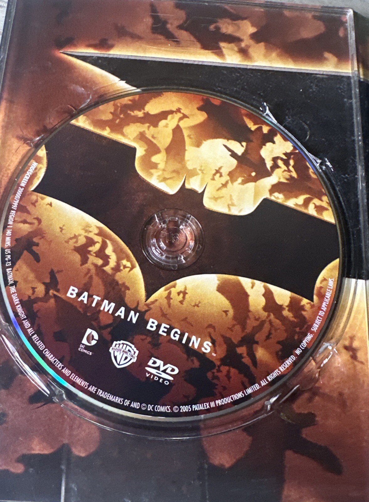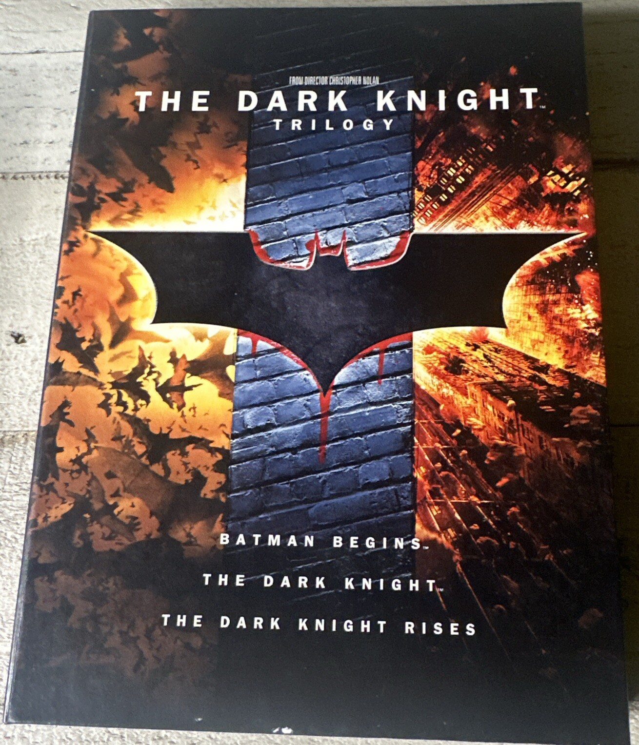 The product is "The Dark Knight Trilogy" on DVD, featuring a collection of superhero movies centered around the iconic character Batman. Produced by Warner Home Video, this box set includes the three films in the trilogy directed by Christopher Nolan - "Batman Begins," "The Dark Knight," and "The Dark Knight Rises." Fans of the superhero genre can enjoy this DVD set for hours of thrilling action and storytelling. Please see all photos before purchasing.