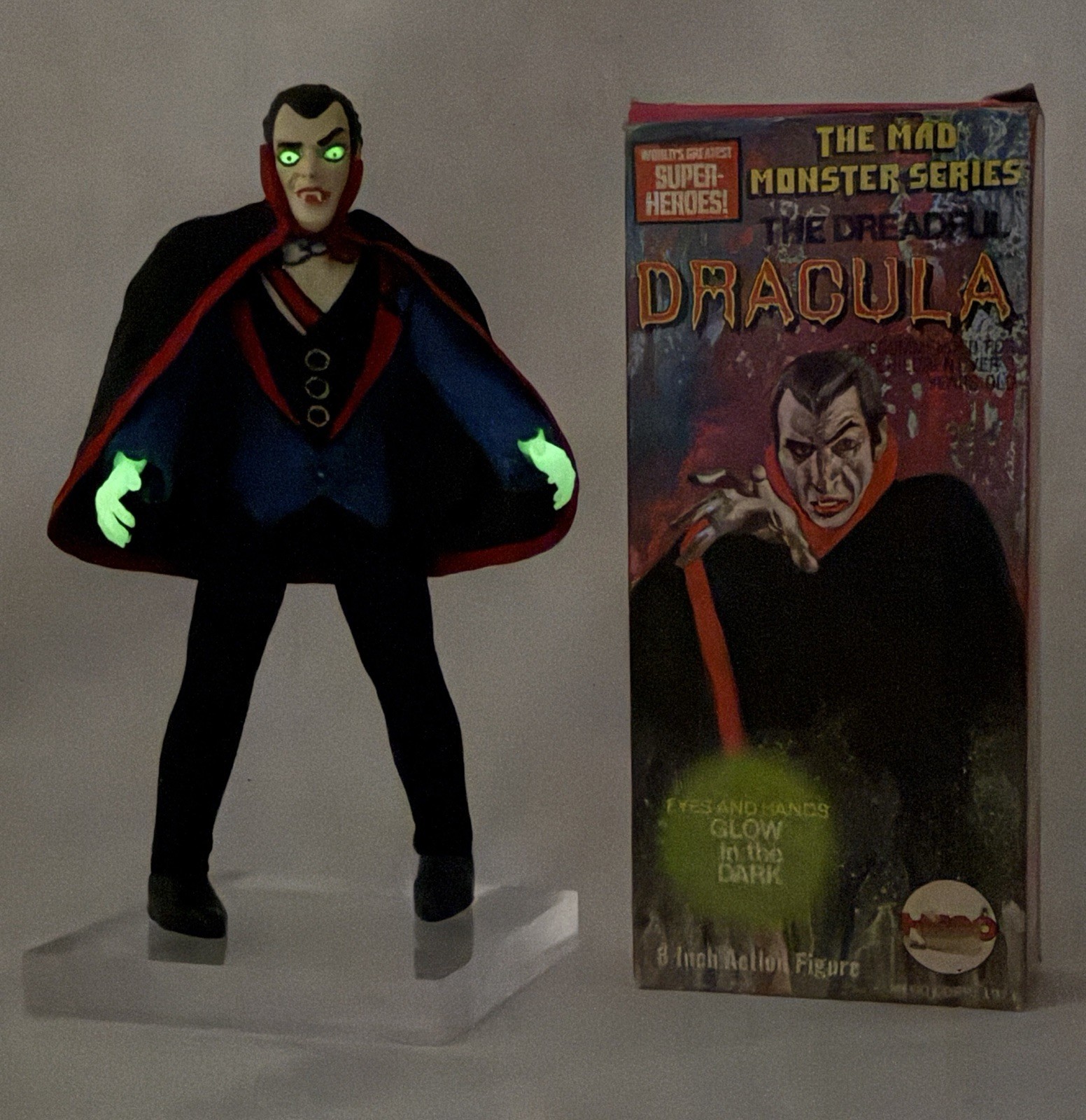 The Dreadful Dracula Mad Monster Series World’s Greatest Super Heroes Mego 1973 The description of this item has been automatically translated. If you have any questions, please feel free to contact us. THE DREADFUL DRACULA MAD MONSTER SERIES WORLD'S GREATEST SUPER HEROES MEGO 1973 Used figure with box. Box in excellent condition with light signs of wear. Figure in excellent condition. Hand and eye fluorescence working. Height 8 INCH 20 CM Very rare to find in these conditions. Item for adult collectors. Refer to pictures, ask for more information. For international shipments and outside Italy, before purchasing, please contact us first in order to accurately establish the amount. We thank you for choosing us. If you have not received your item within the expected timeframe, please contact us before opening a dispute. We will be happy to assist you and find a mutually satisfactory solution. We kindly ask you to wait for our response before proceeding with any complaints. Your satisfaction is our priority. Dear customer, please note that each item available in our store is equipped with a unique invisible identification system. This allows us to verify the authenticity of the items in the event of a return. Any inconsistency between the item sold and the one returned will be promptly detected and reported. We thank you for your kind attention and collaboration. Battery-powered items are supplied without a battery. If payment is not made within 4 days of purchase, the item will automatically be relisted and the sale will be canceled. Our shop is located in Italy (European Union). Any customs duties or import fees are not included in the price and are borne by the buyer, according to the regulations of the country of destination. THE DREADFUL DRACULA MAD MONSTER SERIES WORLD'S GREATEST SUPER HEROES MEGO 1973 Used figure with box. Box in excellent condition with light signs of wear. Figures in excellent condition. Hand and eye fluorescence works. Height 8 inches / 20 cm. Very rare to find in this condition. Item for adult collectors. Please refer to pictures, ask for further information. For international and out of Italy shipment please contact us before to buy in order to define exactly the costs. Combined shipping for the purchase of several items. Tracked shipping. Thank you for choosing us. Please note that delivery times may vary depending on shipping conditions. If you have not received your item by the deadline, please contact us before opening a dispute. We will be happy to assist you and find a mutually satisfactory solution. We kindly ask you to wait for our reply before proceeding with any complaints. Your satisfaction is our priority. Dear customer, please note that every item available in our shop is tagged with an exclusive invisible identification system. This allows us to verify the authenticity of the items in the event of a return. Any discrepancies between the sold item and the returned item will be promptly detected and reported. We thank you for your attention and cooperation. Battery-powered devices are supplied without batteries. If payment is not made within 4 days since purchase, the item will be automatically relisted for sale and the transaction will be canceled. Our Store is Located in Italy (European Union). Import duties, taxes, and customs charges are not included in the item price or shipping cost. These Costs Are The Buyer's Responsibility According to the Regulation of the Destination Country. Dear customer, please note that each item available in our store is equipped with a unique invisible identification system. This allows us to verify the authenticity of the items in the event of a return. Any inconsistency between the item sold and the one returned will be promptly detected and reported. We thank you for your kind attention and collaboration. Thank you for choosing us. Please note that delivery times may vary depending on shipping conditions. If you have not received your item by the deadline, please contact us before opening a dispute. We will be happy to assist you and find a mutually satisfactory solution. We kindly ask you to wait for our reply before proceeding with any complaints. Your satisfaction is our priority. Dear customer, please note that every item available