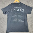 Vintage-style Eagles band t-shirt from their History Tour 2015. Features band photo and tour dates on front. Gray/charcoal color with white graphics. Shows some minor wear and fading consistent with age. Great collectible piece for Eagles fans. Color: Gray Department: Unisex Adults Type: T-Shirt Fit: Regular Sleeve Length: Short Sleeve Character: The Eagles, Eagles Band, History Tour, Rock Band, Music Icons Pattern: Graphic Print Character Family: The Eagles, Classic Rock Bands, Music Legends, Concert Tours, Rock and Roll Hall of Fame Keywords: eagles, tour shirt, band tee, concert merchandise, rock music, 2015 tour, band merch, music memorabilia, tour dates, graphic tee all items have been cleaned and disinfected we stand behind all we sell so please contact us if you have an issue with any order