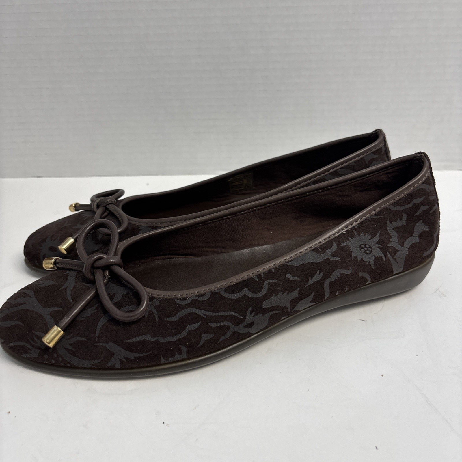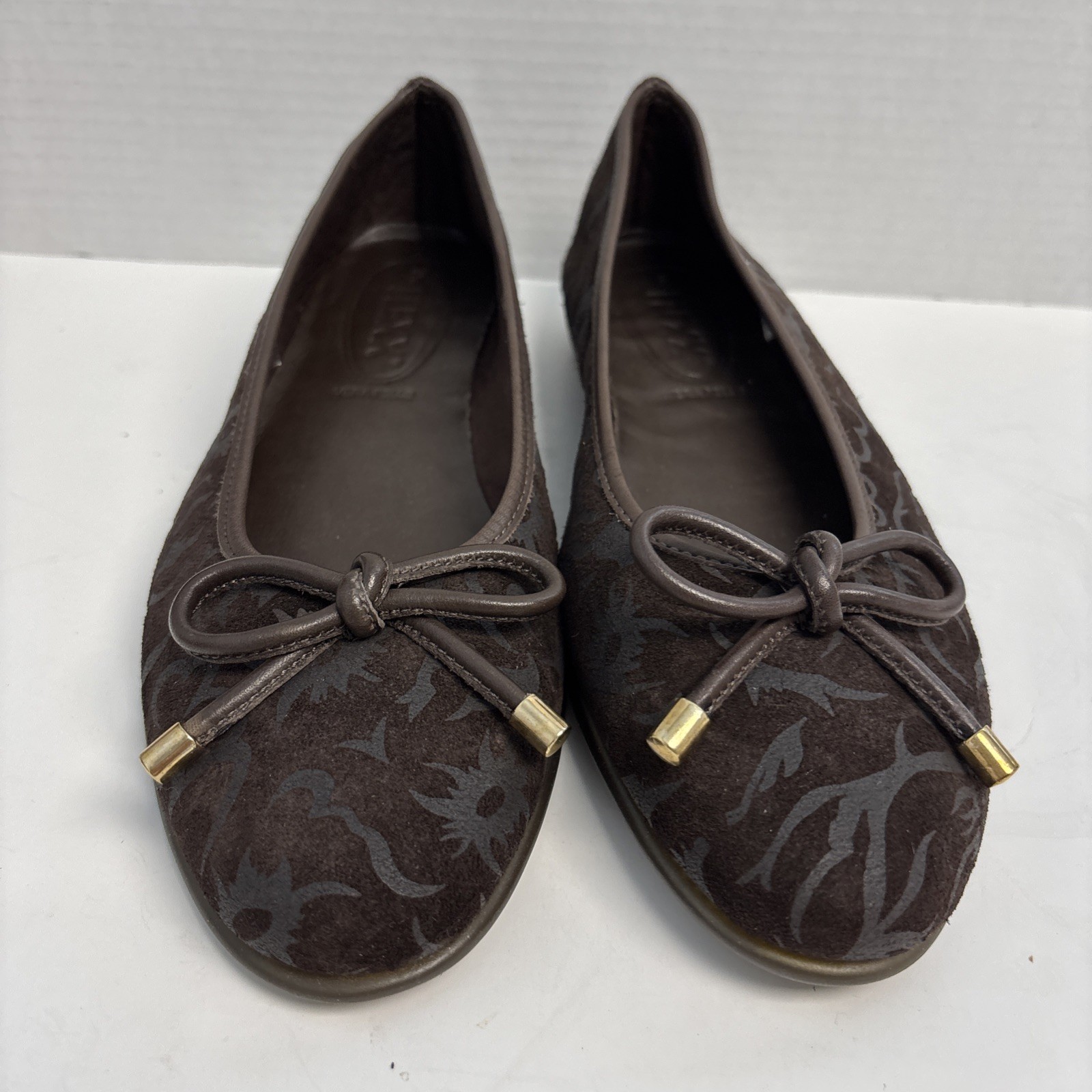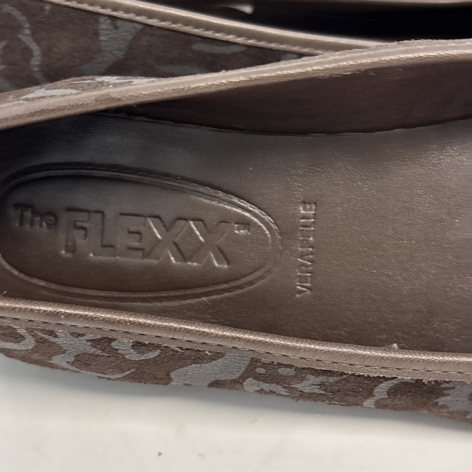The FLEXX Brown Leather Ballet Flats Shoes With Swirl Design Size 8 Excellent Used Condition In barely worn, like new condition. Please see all pictures and thanks so much for looking.