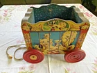 The Gong Bell Co. pull toy lions circus wagon, very nice vintage condition
