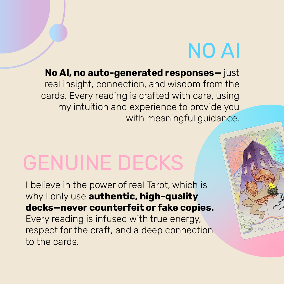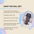 π Is this true love? The Heart: Have I Met the One?This Tarot spread helps you connect with your intuition and uncover the answers your heart seeks. Let the cards guide your love life! π Order now for deep insight & clarity! β¨π π« Delivered as a detailed write-up. PDF π« Includes card meanings and how they relate to your situation π« Fast, accurate, and personalized What do I need from you? Please share your name and date of birth (MM/DD/YYYY), as well as your partner's name, date of birth, your email and current situationship, if relevant. Choose the deck from 3 options: Ethereal Visions, Pastoral Tarot or Light Seers. β¨ Book your reading today! β¨ In-Depth Love Reading, Accurate Tarot Reading for Relationships, Psychic Love Insights, Ex Lover Reading, Tarot Predictions