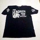 PRE OWNED. IN EXCELLENT USED CONDITION. NO STAINS OR DAMAGE. PLEASE VIEW ALL PHOTOS ABOVE FOR MEASUREMENTS AND PROOF OF CONDITION. STORED IN A CLIMATE CONTROLLED SMOKE-FREE AND PET-FREE HOME. SHIPS PROMPTLY AND SECURELY. The Hundreds presents this stylish black t-shirt with a unique double-sided graphic print. The shirt features the iconic Adam Bomb character and the brand's signature logo. Made from high-quality cotton knit fabric, this t-shirt is machine washable and offers a comfortable regular fit. The shirt is perfect for any season, whether it's winter, summer, fall, or spring. Its short sleeves and crew neck make it an ideal choice for a casual day out or a day at work. The shirt is part of the Wolf of Wallstreet product line and is designed to cater to men's fashion needs. Add this t-shirt to your wardrobe and enjoy the comfort and style it offers.