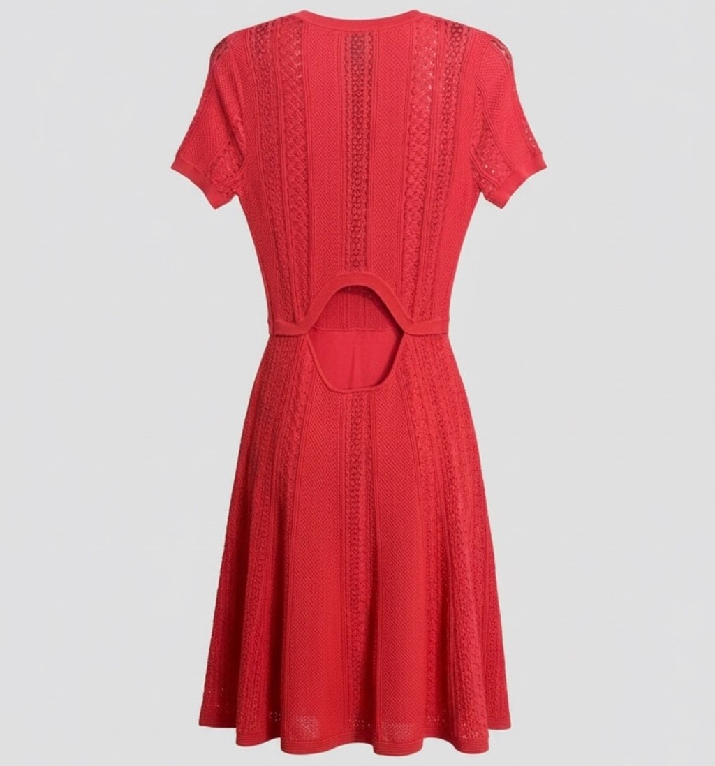 Beautiful red knit midi dress by The Kooples, New With Tags (retail $385). Features romantic lace panel detailing, a stretchy knit fabric, short sleeves, and a classic feminine silhouette. Size & Fit Tagged: FR 2 Fits: US Small–Medium (best for US 4–6) Kooples dresses use French sizing, and FR 2 typically fits S/M. Please use the measurements: • Bust: 17” pit to pit (34” around) • Waist: 14.5” across (29” around) • Length: 37” shoulder to hem Fabric has stretch. Details • Lace panel accents • Stretch knit • Midi length • Perfect for holidays, events, work, parties • NWT — brand new Ships fast from a smoke-free home. the kooples dress, red midi dress, knit lace dress, holiday dress, romantic dress, NWT dress, winter party dress, french designer dress, classic red dress, elegant midi dress, small medium dress, work event dress