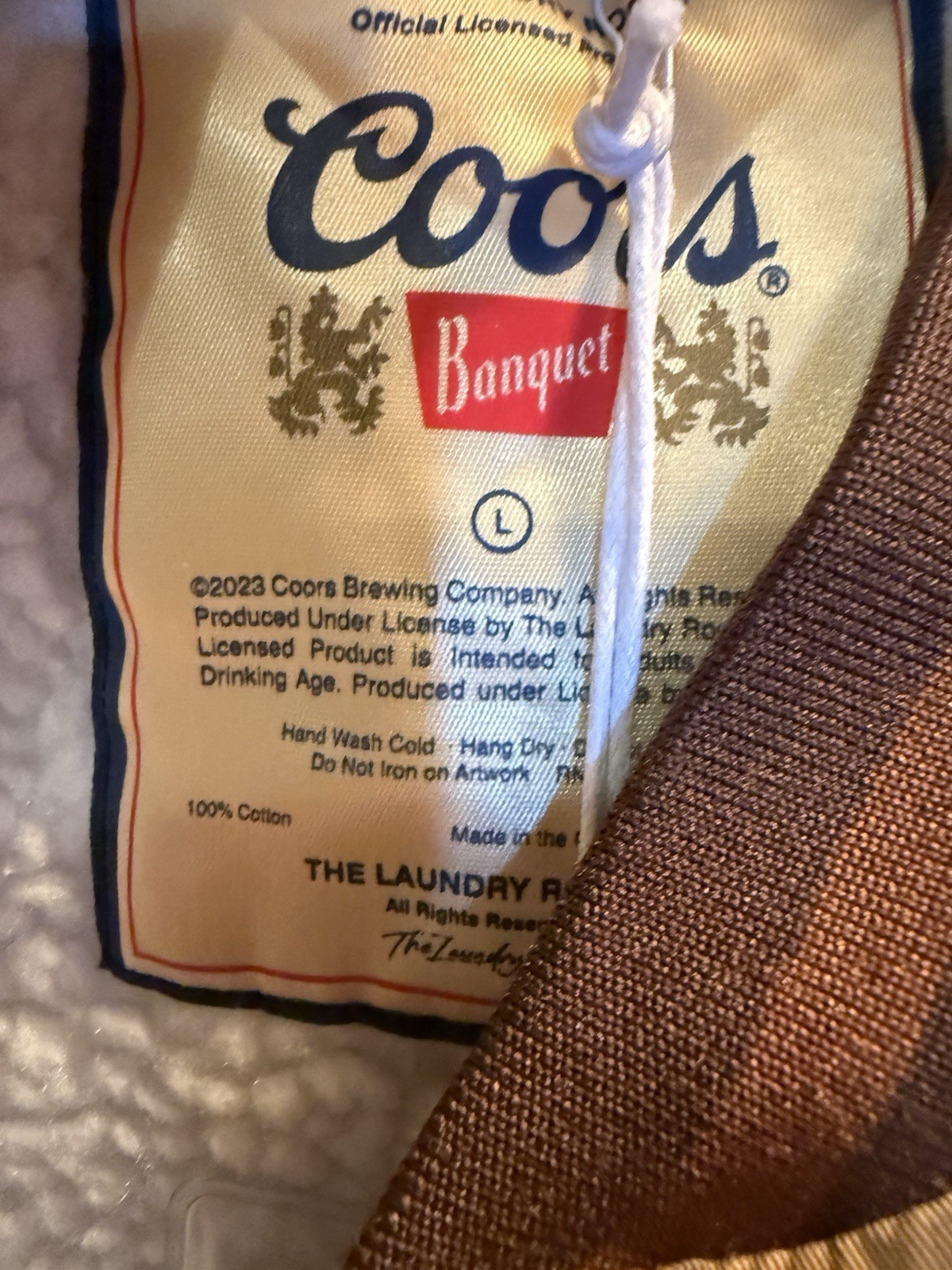 Brand new with tags, the laundry room, Coors branded jacket, including the tag with the bottle opener