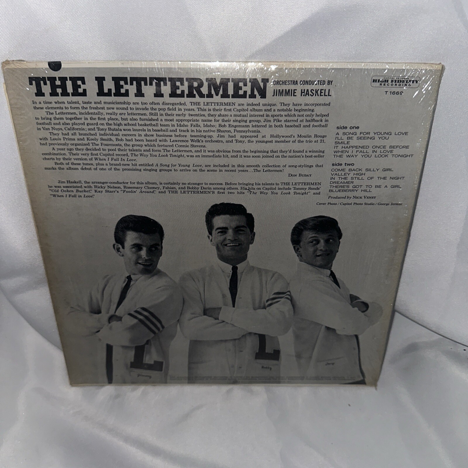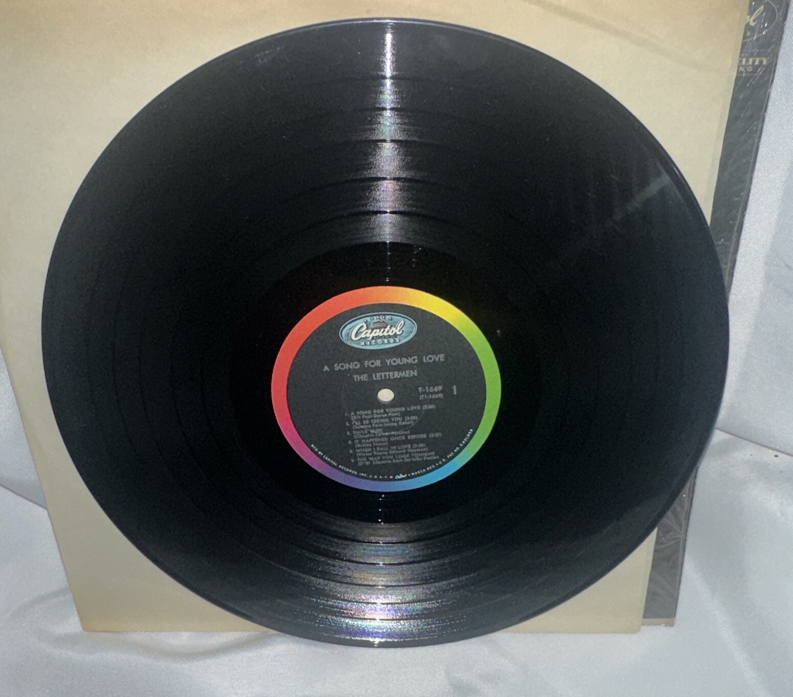 This is an excellent first edition LP by The Lettermen, titled "A Song For Young Love" and released by Capitol Records in 1962. The 12" vinyl record has a black color and comes in a cardboard sleeve. The inlay and sleeve conditions are both rated as Excellent (EX). The LP has a catalog number of ST 1669 and is a 33 RPM record. The record grading is also rated as Excellent (EX). This LP is a great addition to any pop music collection from the 1960s era.