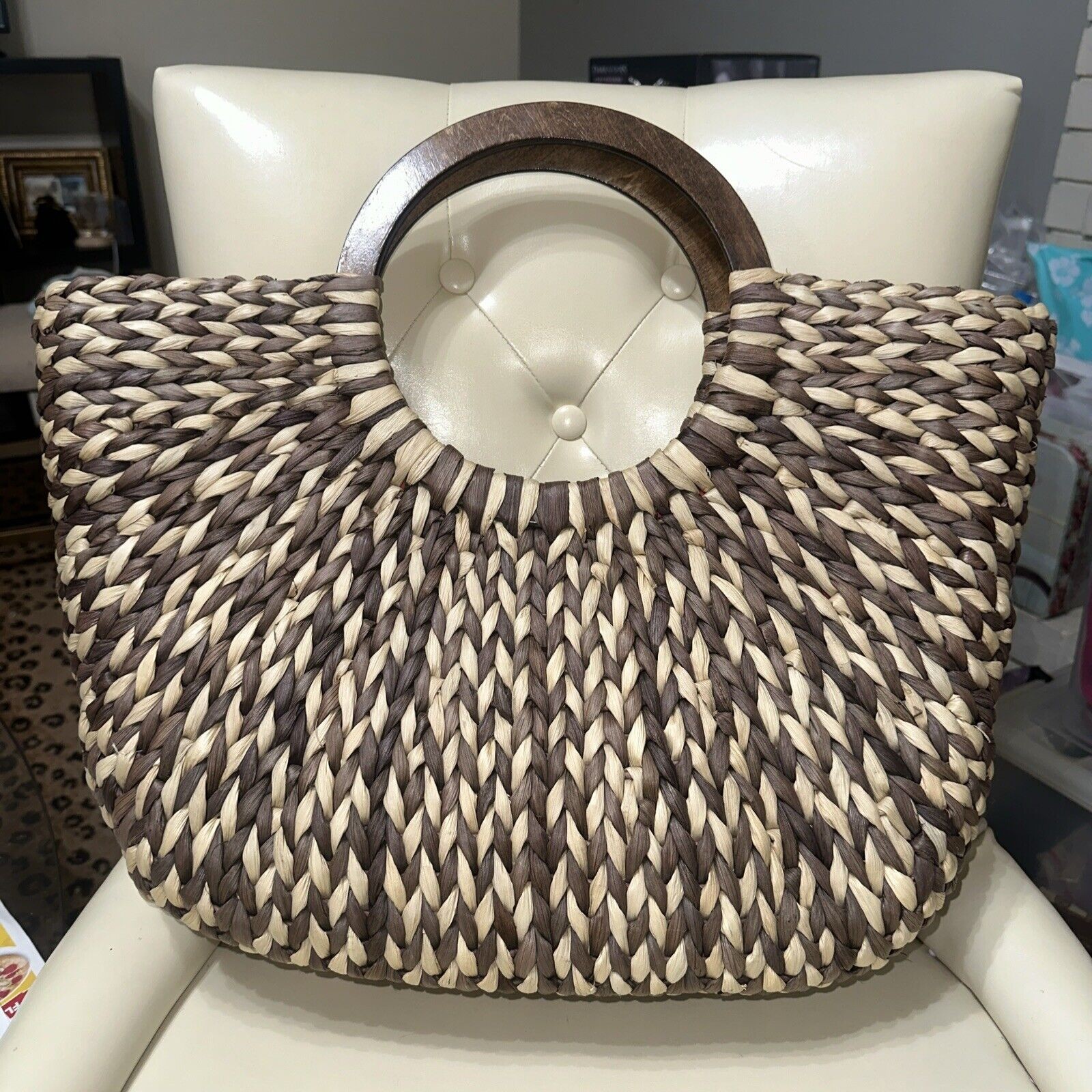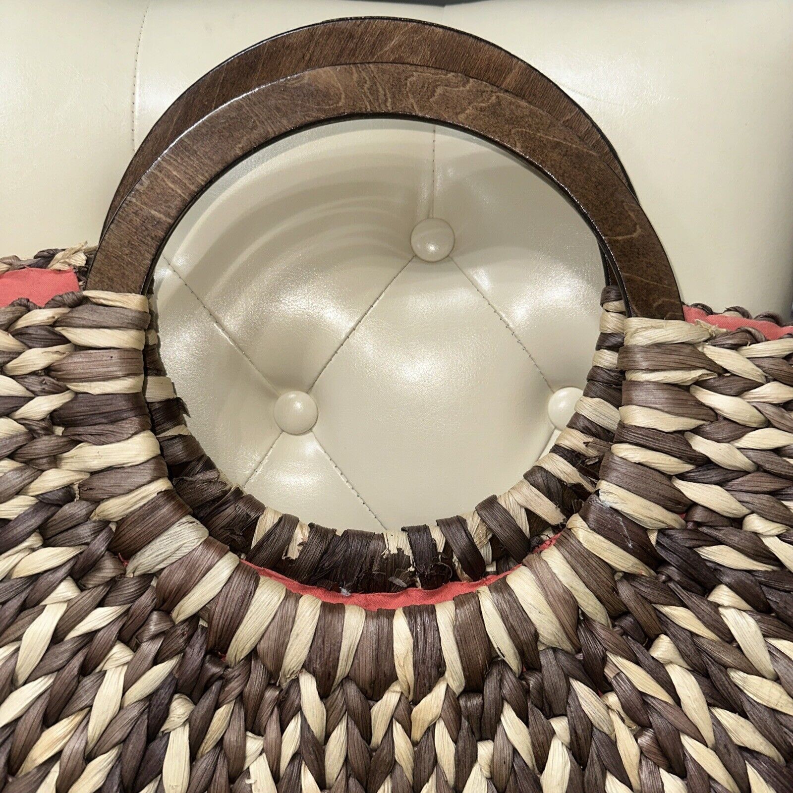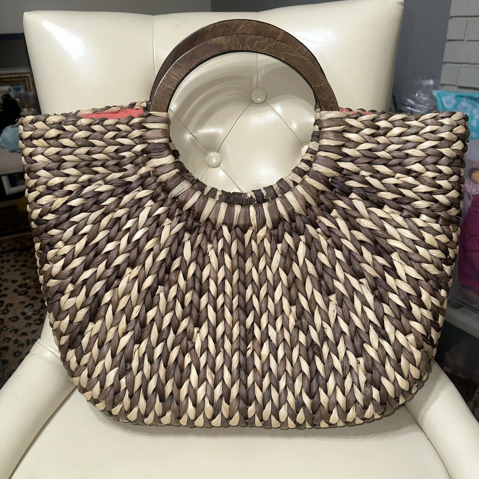 The Limited Woven Straw Tote Beach Bag Wood Handles Extra Large Brown/Tan/Orange. Condition is Pre-owned. Shipped with USPS Ground Advantage.