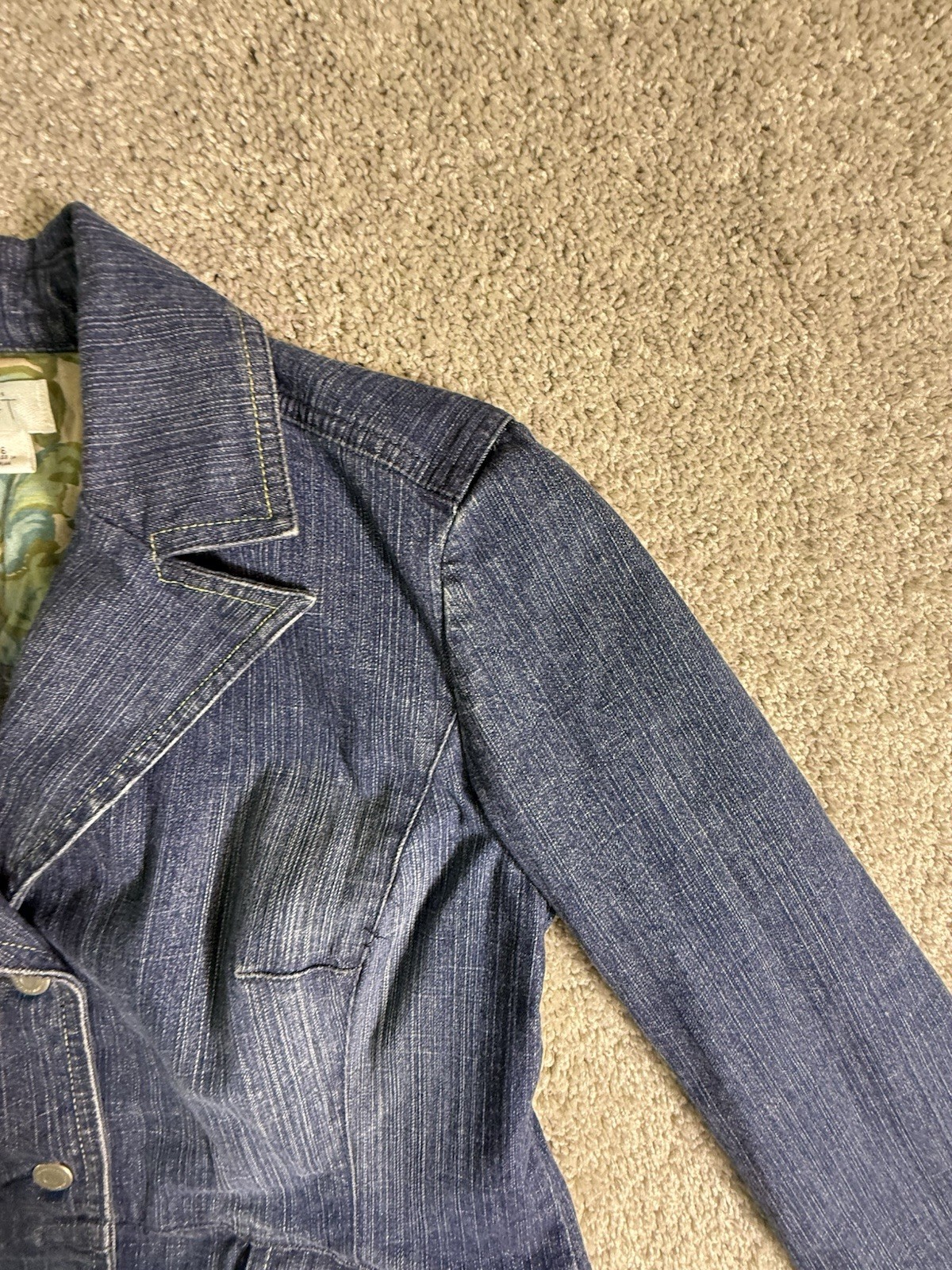 The Loft Women’s Jean Jacket in size 6 is a stylish and versatile piece made from stretch denim. With a solid blue color, long sleeves, and a short length, it is perfect for casual occasions in the fall and spring seasons. The jacket features a button closure, a regular fit, and is machine washable for easy care. The lightweight design adds comfort without compromising on the durability of the cotton outer shell and lining material. Made by the brand Jean, this basic jacket is a timeless addition to any woman's wardrobe. 4297