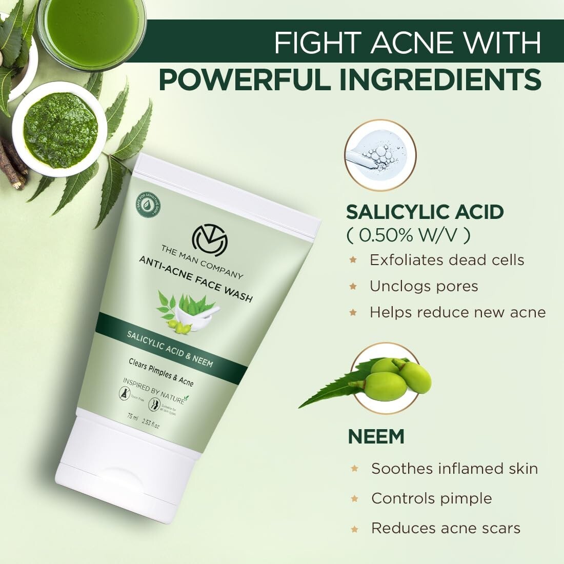 HomeThe Man Company Anti-Acne Face Wash For Clears Pimples & Acne Toxin-Free 75ml