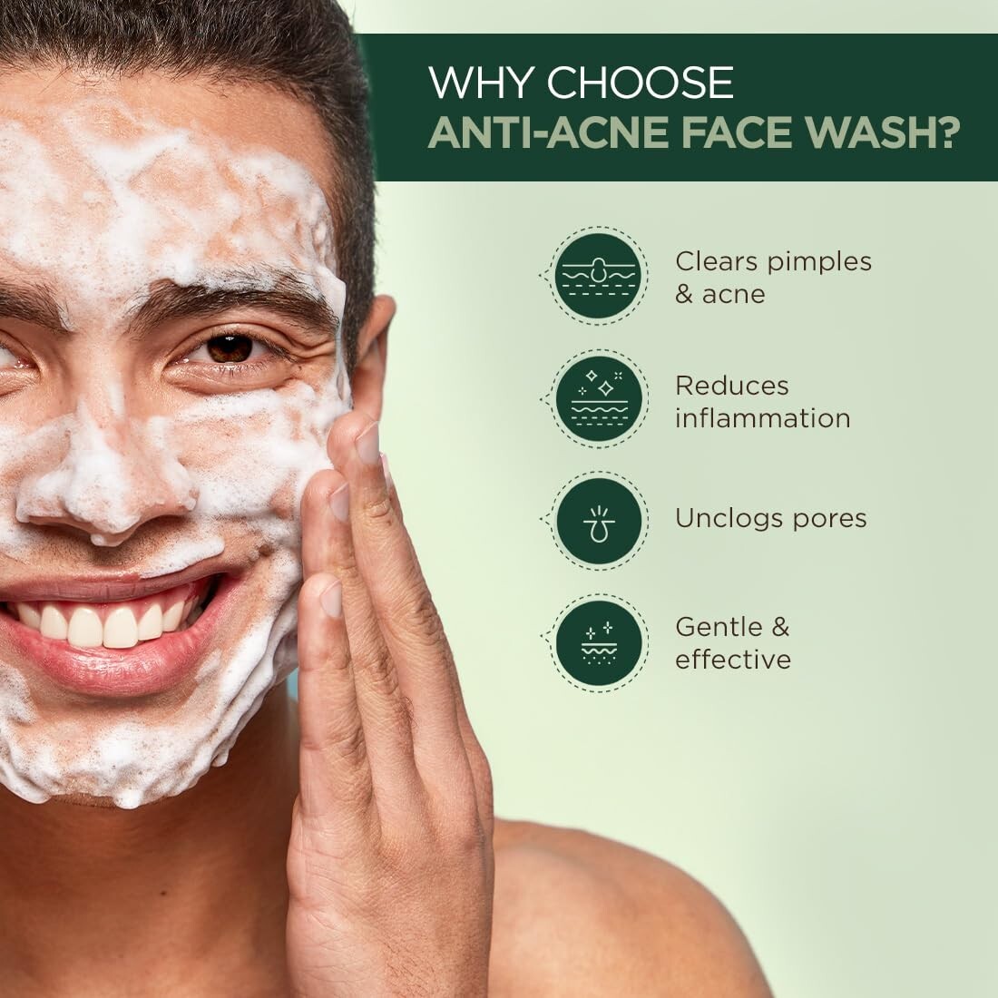 Size:RegularFormulation:GelMain Purpose:Clears Pimples & AcneSkin Type:All Skin TypesPeriod After Opening (PAO):12MBrand:The Man CompanyActive Ingredients:Neem & Salicylic AcidCountry of Origin:IndiaDepartment:MenProduct Line:The Man Company Anti-Acne Face WashVolume:75ml X 2Features:Toxin-FreeType:Face WashBody Area:Face