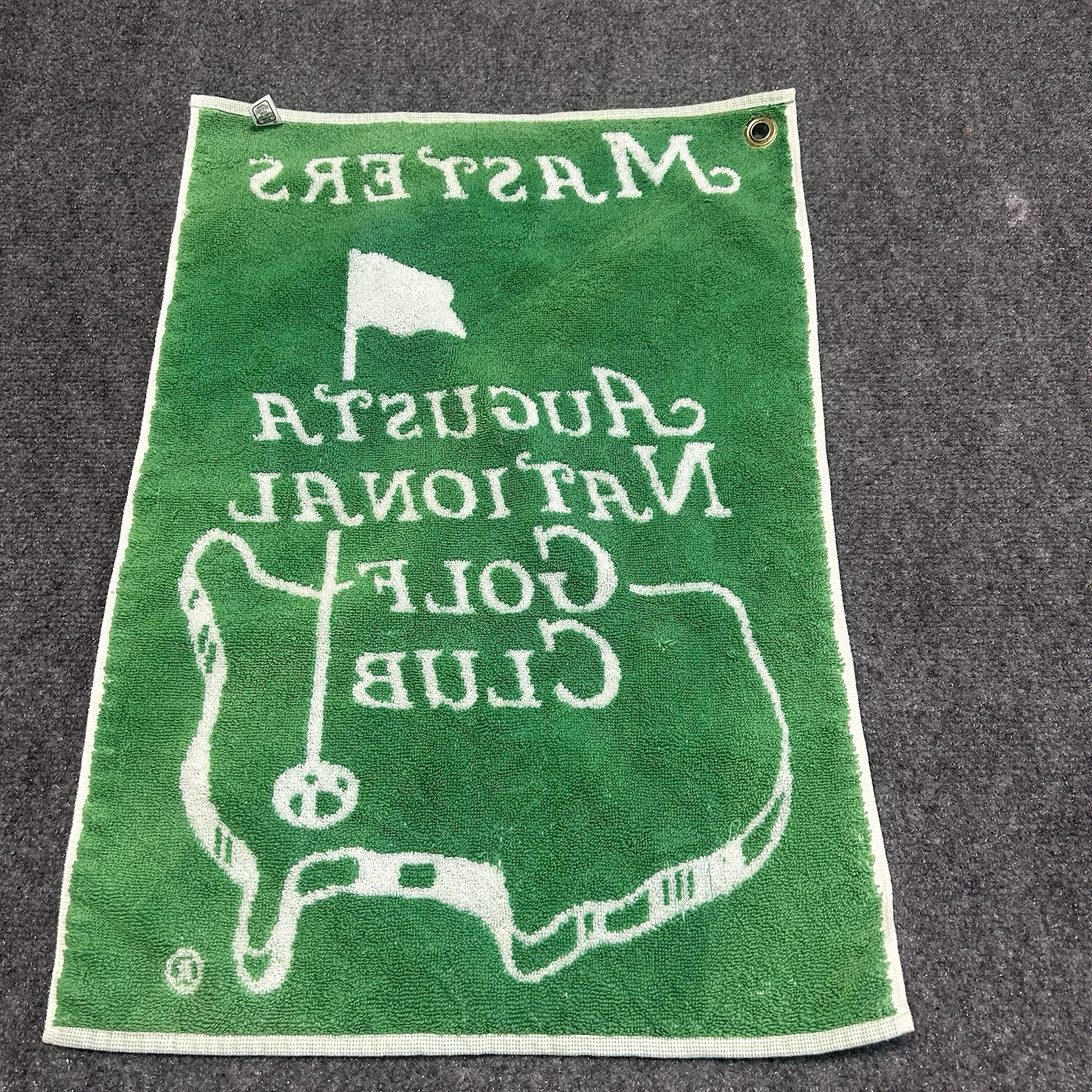 The Masters Tournament Green & White Golf Bag Caddy Towel is a high-quality, soft cotton towel featuring an embroidered logo and a textured design. With dimensions of 14"x22", this rectangular golf towel is a perfect accessory for any golfer, showcasing the iconic Masters branding and colors of green and white. The towel includes a grommet for easy attachment to a golf bag, making it a convenient and stylish addition to your golfing gear. Made in the United States, this golf bag towel is a must-have for any golfer looking to add a touch of sophistication to their equipment.