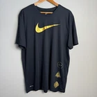 The NIKE TEE Dri-Fit Men's Athletic Cut Gold Logo T-Shirt Black Size X-Large Golden swoosh 75% recycled polyester 13% certified organically grown cotton 12% rayon Great used condition with some minor pilling/wash-wear Approximate flat measurements in inches: Pit to pit - 23 Length (from side collar) - 30 ********************************** Questions? Send me a message Thrifted / Vintage items may have varied measurements Please check measurements provided in the photos or in the description ** All measurements are approximate ** Colors may vary depending on lighting or the screen / device being used for viewing **********************************