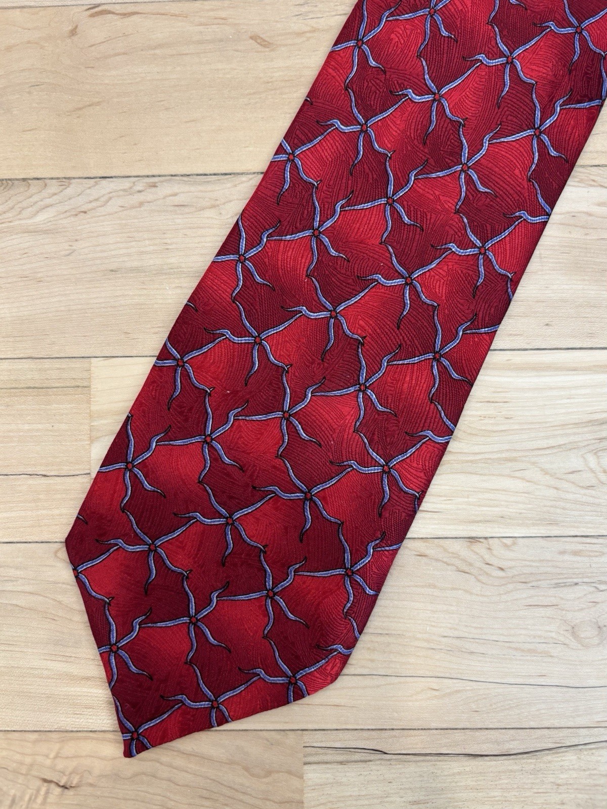 Beautiful vintage red tie from The Nature Conservancy Preservation Collection, featuring the Brittle Starfish pattern. 100% silk, hand made. 4”wide and approximately 58” long. One VERY small snag (see last photo).