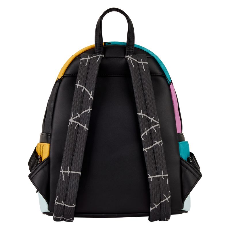 If Sally is your favorite character from Disney Tim Burton's The Nightmare Before Christmas , then this bag is for you! This mini backpack is inspired by Sally's ensemble. You'll find details of her patchwork dress all over with embroidered details. You'll even find stitching along the straps! Who says spooky season can't be all year-round?! Celebrate Sally and the world of Halloween Town with this mini backpack! Features Faux leather (polyurethane) Sturdy top handle Adjustable shoulder straps Applique, embroidered, and printed details Coordinating interior lining Dimensions: 9"W x 10.5"H x 4.5"D 22.8cm W x 26.6cm H x 11.4cm D