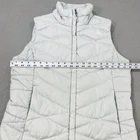 The North Face 550 Goose Down Puffer Vest Womens Medium Gray Packable Quilted Color---Grey Stains or Holes---Small, faint spot on front near right chest, otherwise in great used condition Actual Measurements--- Please see pictures for actual measurements Please check out my other listings and bundle for a better price and shipping discount.