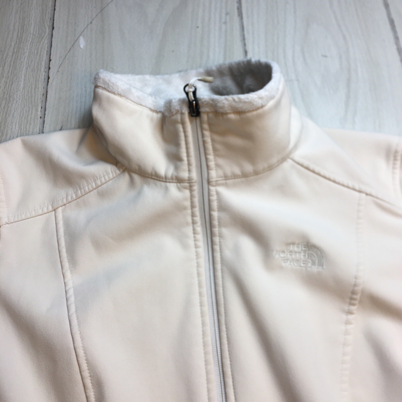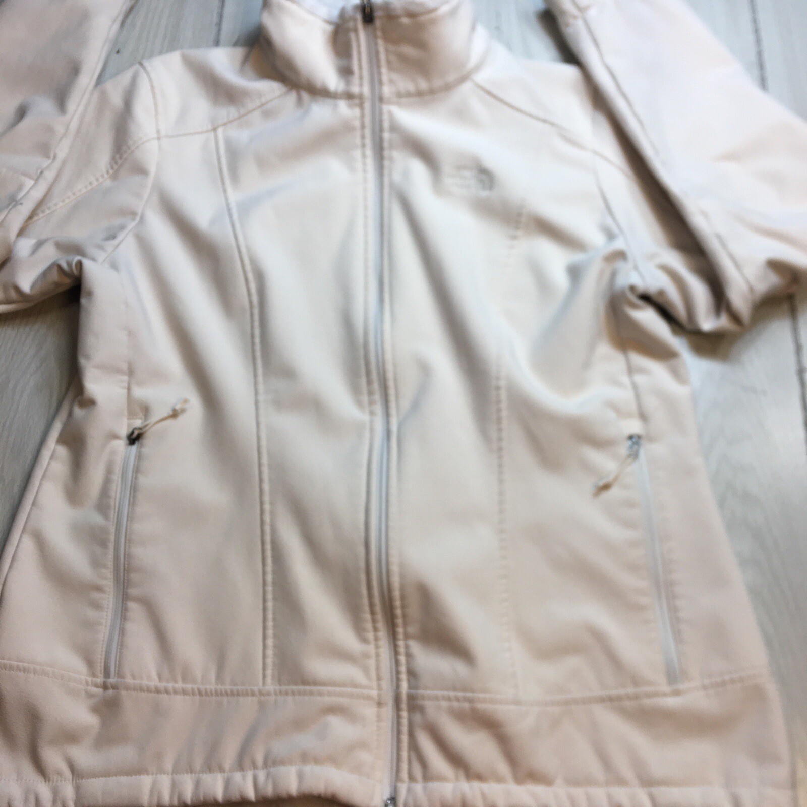 The North Face Jacket Apex Chromium Thermal Softshell Full Zip Coat fleece lined XL Ivory Some peeling on sleeves please view pictures M3#1766