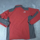 Brand: The North Face Style: Men's full zip Apex softshell jacket designed as a windbreaker and lightweight outer layer for hiking and active wear. Color: Red body with dark gray contrast panels at the shoulders, sides, and lower sleeves. Tag size: Men's X-Large (XL/TG on interior size label). Material: Smooth polyester softshell outer fabric with soft polyester fleece lining; refer to interior care label for complete fabric composition and care instructions. Features: Full-length front zipper with chin guard, stand-up collar, zip hand pockets at the lower front, zip pocket on the upper sleeve with pull tab, elastic-bound cuffs, and adjustable hem drawcord with cord locks for a customizable fit. Branding: Embroidered The North Face logos at the left chest and upper back, and printed Apex logo at the lower sleeve. Product line: Part of The North Face Apex collection, offering wind-resistant softshell protection suitable for cool-weather layering. Season and use: Ideal for fall hiking, walking, travel, commuting, and everyday casual outdoor wear. Pattern and design details: Clean colorblock design with contrast panels and tonal stitching for a modern technical outdoor look. Codes: Interior tag lists S09, 4500735954, 4500735965, S09C114, T485-T895, and ADMN; see photos for complete label information. Item is in gently worn pre-owned condition. Item may contain normal signs of wear, blemishes, discoloration, creases and/or other signs of distress. Photos depict the exact item you will receive including measurements . Please refer to photos for full details prior to purchasing. If need be please measure against a similar clothing item you own. Items are cleaned in accordance with eBay's policies and standards and stored in a smoke free weather controlled environment. Fast USPS Shipping - 30 Day Free Returns - Hats Ship in a Box
