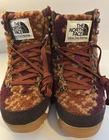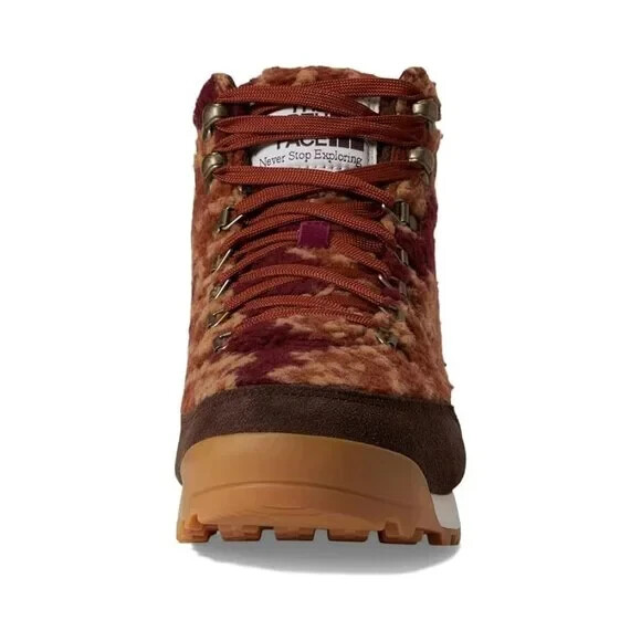 The North Face Back-To-Berkeley IV Boysenberry Mountain Geo Print High Pile Lace Boots This pair comes with contrast-colored detailing on the toe and features a pull tab on the back for easy wear. Premium leather upper. Engineered mesh for structure, stretch and enhanced breathability. Foam padding placed around your ankle collar & under Gusseted tongue for an incredibly comfortable fit & feel. Traditional lace closure for a secure fit. D-ring eyelets for firm lacing.