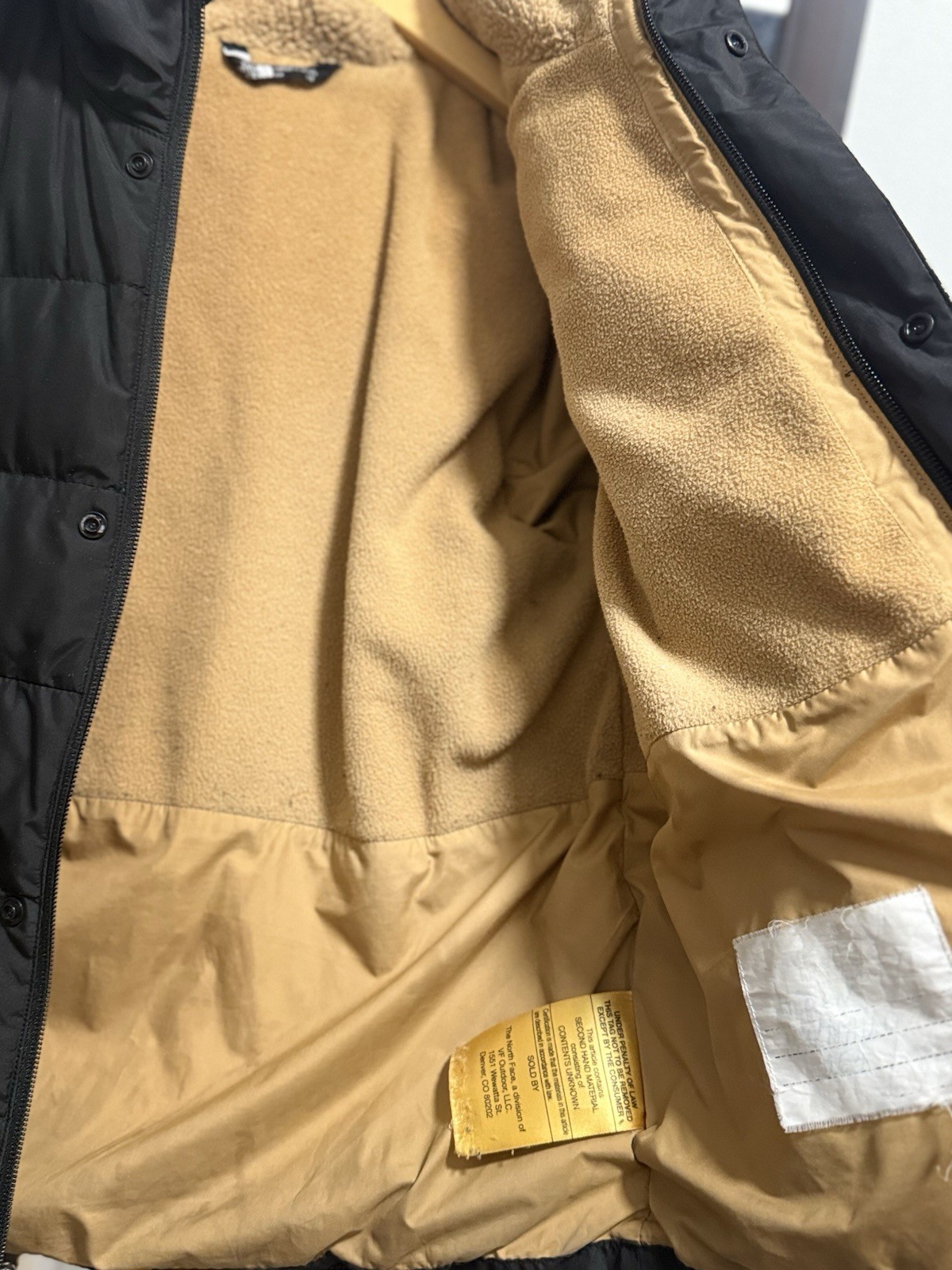 The North Face kids puffer jacket (600 fill), black with hood. Very warm, in great condition. No rips, holes, or damage. Down is evenly distributed (not flat or clumped). From a smoke-free, pet-free home. Care/washing instructions: please refer to the inner label. See photos for details.