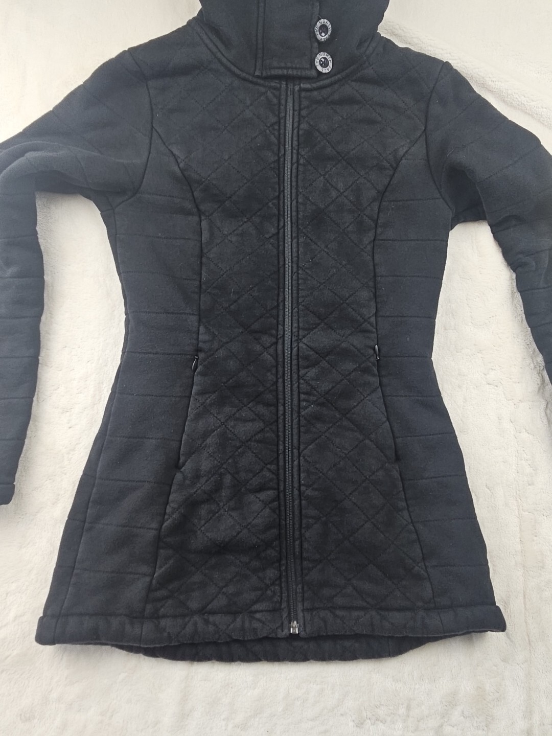 This North Face jacket is a must-have for any woman who loves outdoor activities and needs a reliable and warm companion during fall and winter. Made of 80% cotton and 20% polyester, this mid-length black jacket features a full zip closure and a zip-down collar style. The quilted fleece lining and polyester and nylon insulation material guarantee maximum warmth and comfort during cold days. The jacket also boasts some great features, such as zippered pockets, embroidered logo, and a solid pattern. It is suitable for travel, casual or business occasions, and fits XS size. The North Face TNF Caroluna Quilted Fleece Lined Full Zip Jacket is a perfect choice for any woman who loves outdoor adventures and wants to stay warm and comfortable in style.