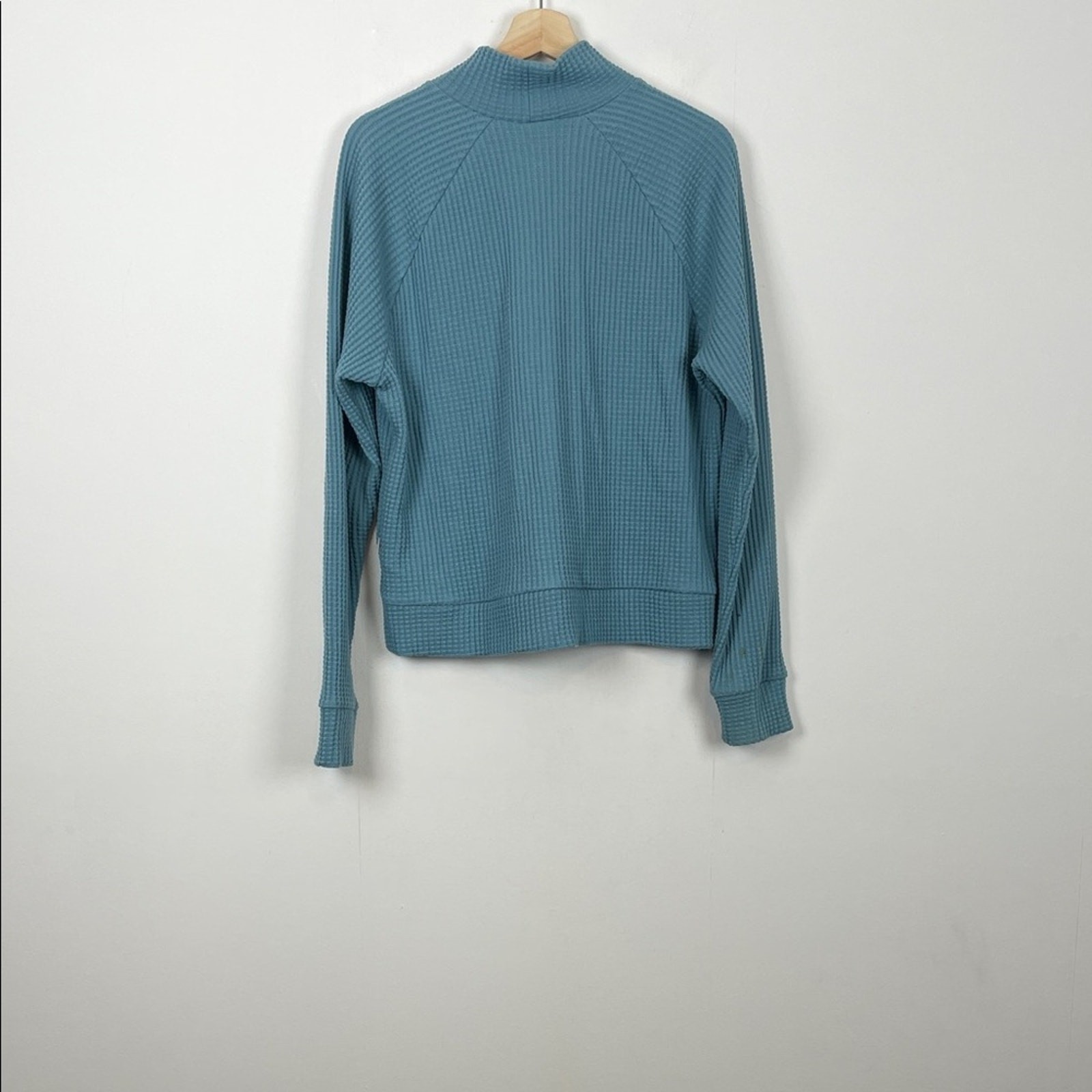 The North Face Chabot Mock Neck Long Sleeve Blue Women's M Waffle Knit Sweater. FEATURES: Flaws: None visible, pre-loved Good Condition, See Measurements Below Style Profile: Cozy blue waffle knit pullover sweater with long sleeves and a high neckline. Approximate measurement Chest (pit-to-pit, laid flat): 21.5" Length: 23" JP-3-0017111232025