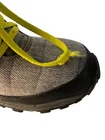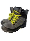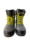 These hiking boots by The North Face offer durability and comfort with waterproof protection. Designed for outdoor enthusiasts, they ensure traction and stability on rugged terrains. The gray and black color combination with vibrant yellow accents adds a stylish touch to your outdoor gear. • Waterproof construction • Durable rubber soles • Yellow lace detailing • High ankle support • Made in Vietnam