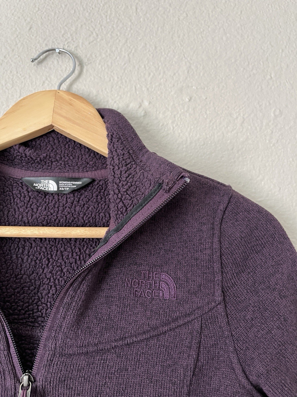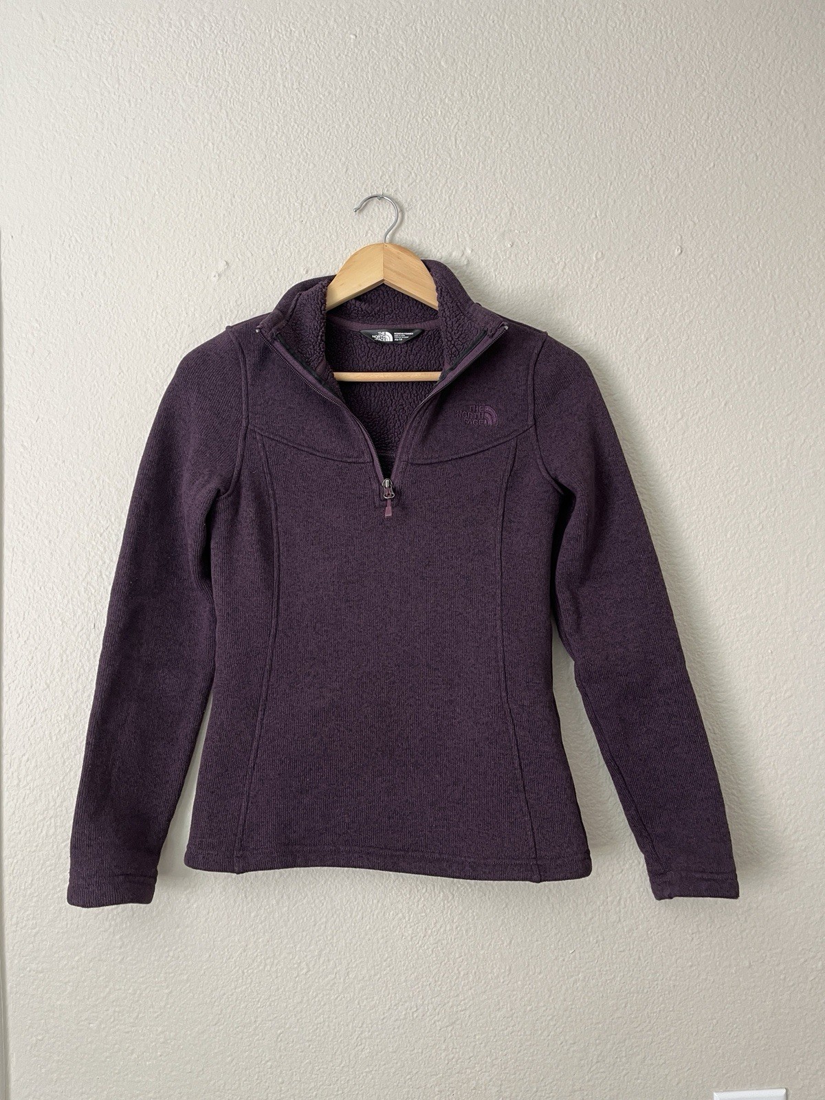 The North Face Knit Fleece 1/4 Zip Pullover Sweater Women XS Purple High Neck