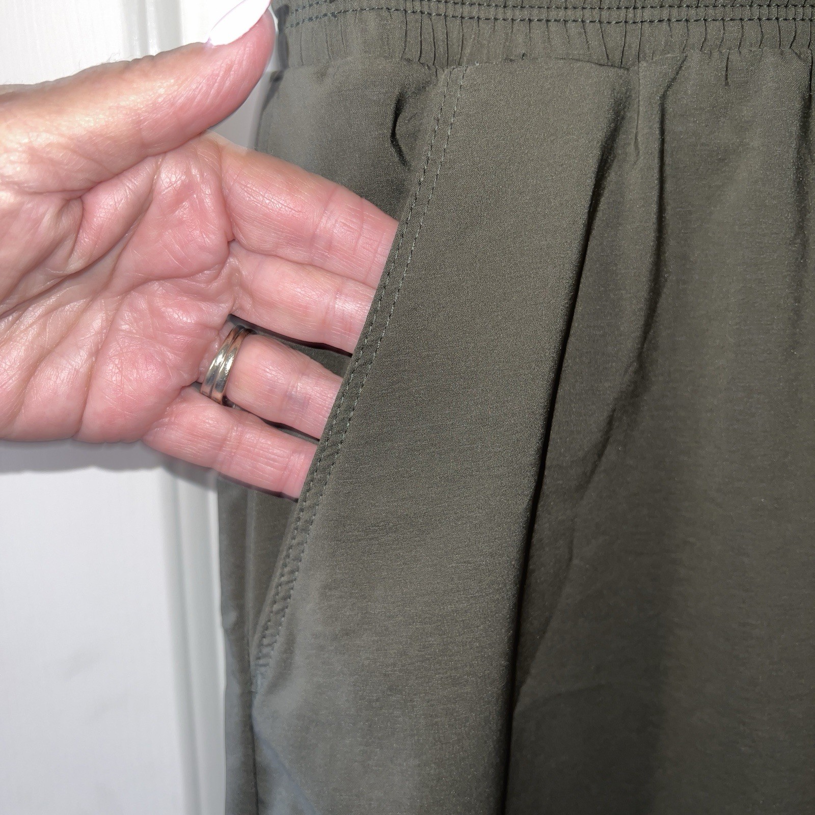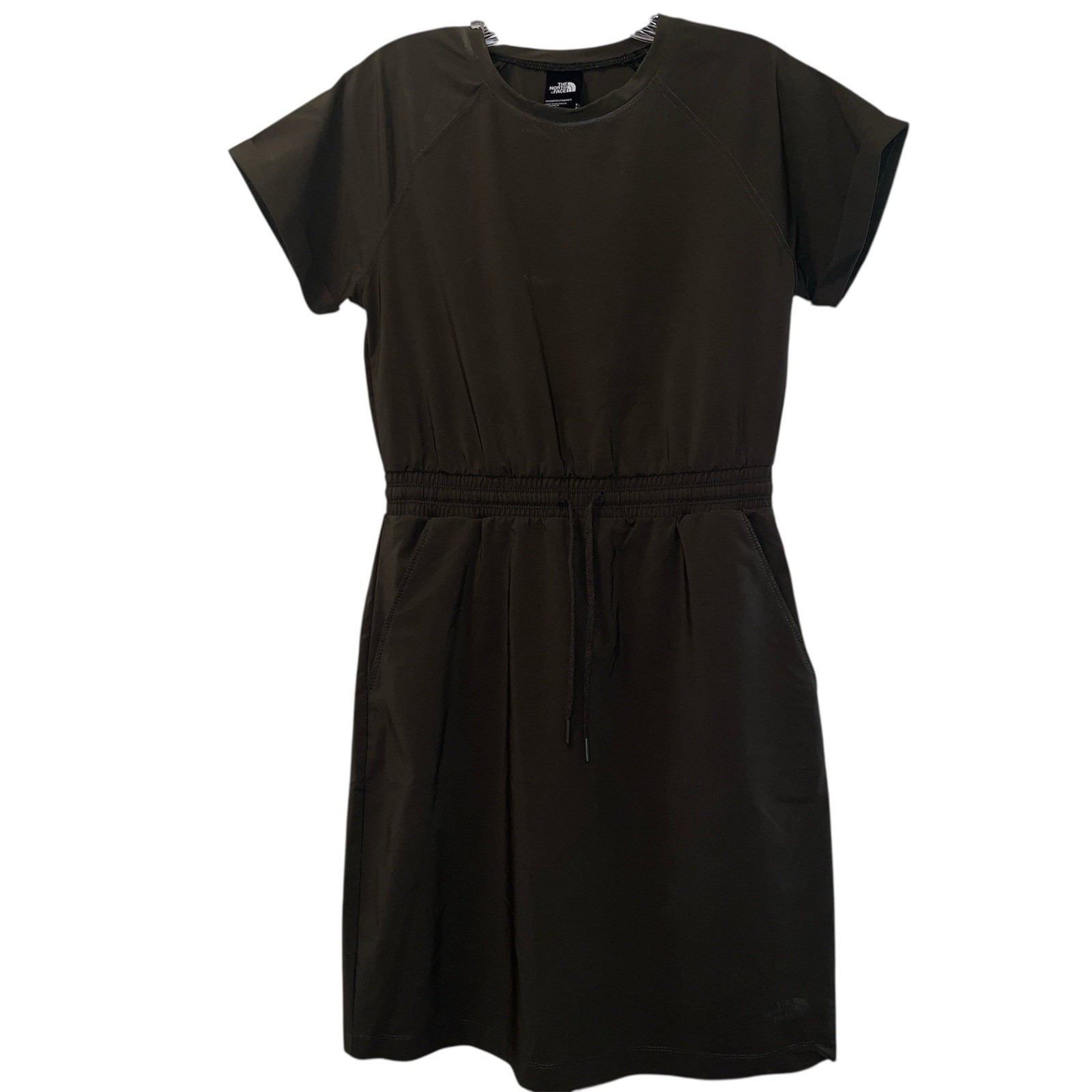 The North Face Olive Green Never Stop Wearing Dress Sz S Raglan sleeves Slash hand pockets Self-elasticated waistband and drawstring for an adjustable fit Ultra violet protection (UPF) 50 Logo above hemline 87% Polyester, 13% Elastane. Very good preowned condition Size: Small Approximate measurements: Length 37”, Pit to Pit 16 1/2” Color: Olive Green