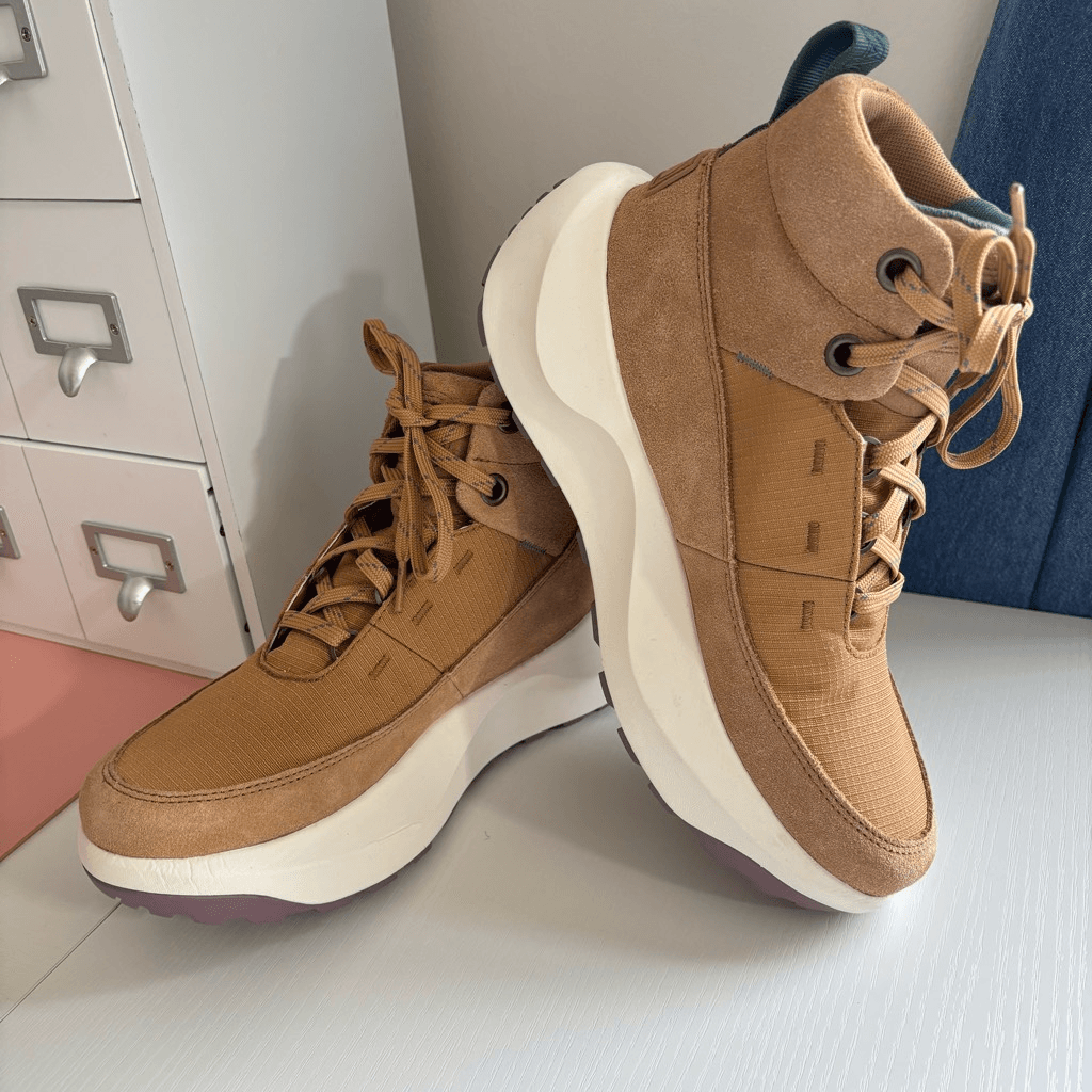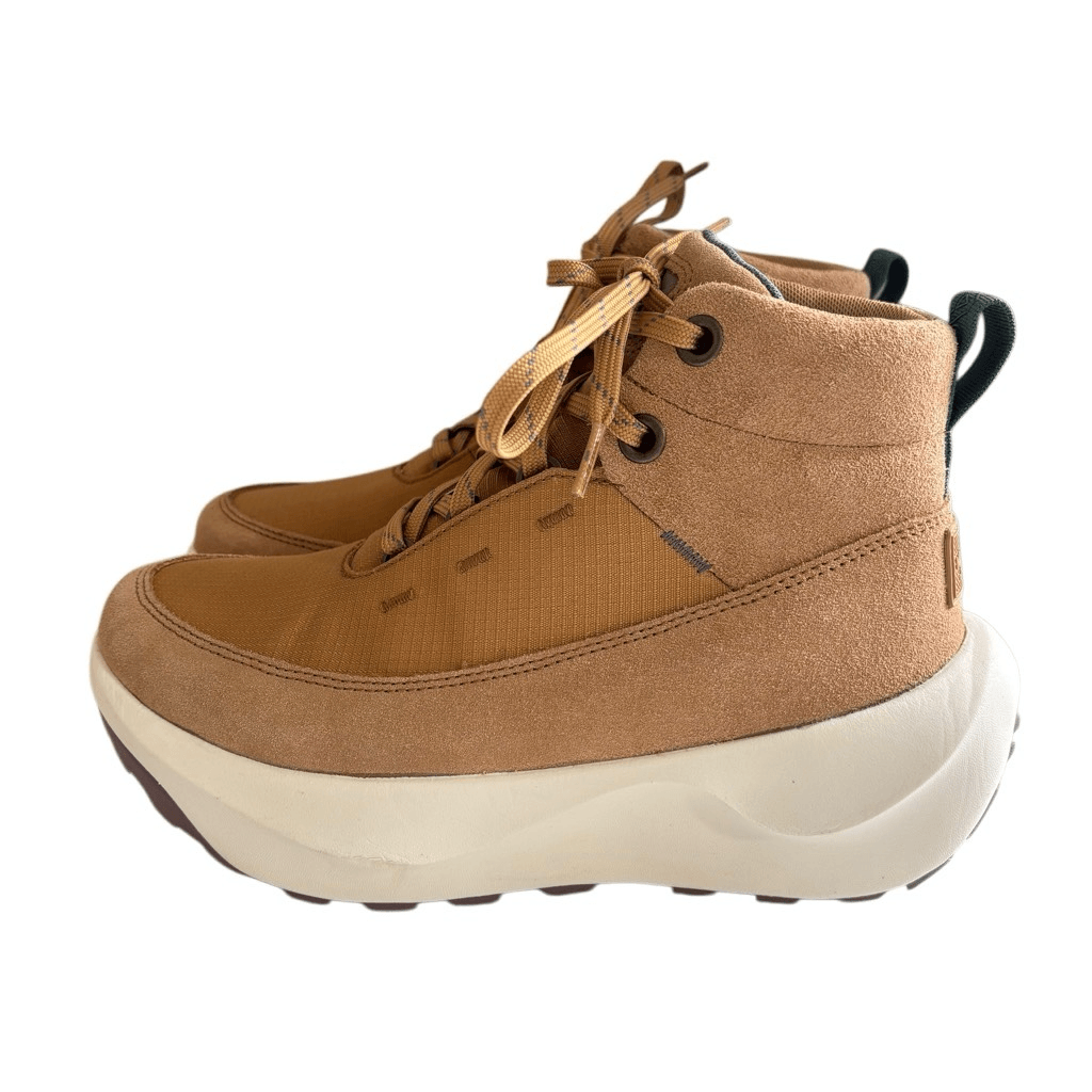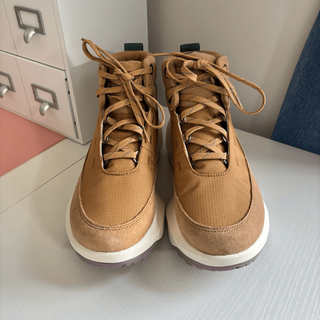 The North Face Halseigh Hiker Boots offer the perfect support with their cushioning underfoot comfort. Featuring pull tabs at the back, these high-performance shoes have a thick midsole and convenient lace-up closure. Leather and textile upper. Textile lining with removable insole. Branding on the tongue. Round toe design. Synthetic outsole. Imported. New urban hiker from The North Face Best for urban hikes, walks, and casual wear Leather sourced from Leather Working Group–certified tanneries Ripstop vamp is lightweight and breathable EVA midsoles heavily cushioned for comfort on our feet Rubber outsoles made for multi-purposed traction NO BOX. Store display!! Never worn but have shelf dirt and/or have been tried on (dust on the bottoms) Photo 9 shows some “wrinkles” on the right shoe. SEE PHOTOS! Have another size listed. Check it out.