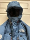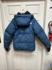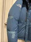 There are a few patches on the right sleeve. Other than that I’m good pre-owned shape! See images. The North Face Himalayan 800 Summit Series Puffer Jacket is a medium-sized men's jacket in a stylish blue color. Made from nylon with down insulation, it features a hood, full zip closure, and an embroidered logo accent. This jacket is designed for casual wear during the winter season, offering both warmth and a classic 90s-inspired design. The North Face brand ensures high quality and durability, making this jacket a practical yet fashionable choice for urban environments.