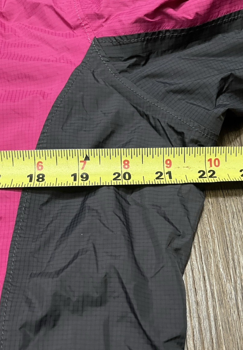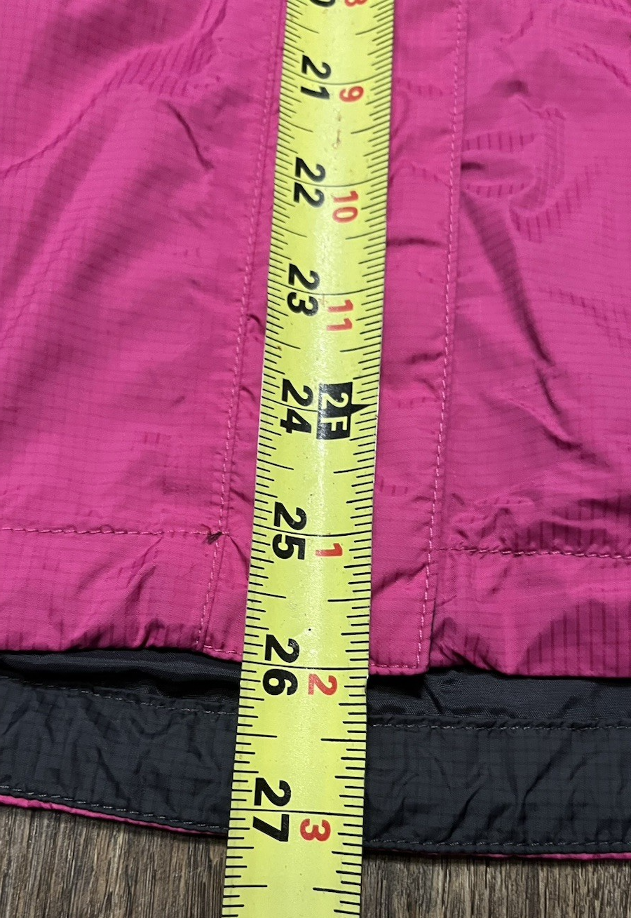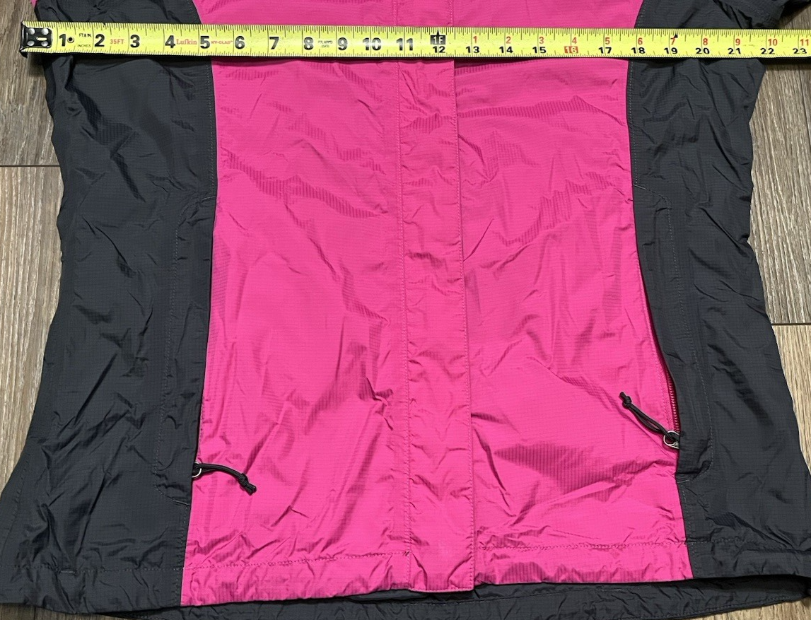 The North Face Hyvent Windbreaker Rain Jacket for women in size L is a stylish and functional outerwear option in a pink and black color combination. Made with durable nylon outer shell and lining material, this mid-length jacket with long sleeves and a zip closure is suitable for various occasions such as travel, casual wear, and workwear. The jacket is machine washable and features a regular fit, making it a practical choice for outdoor activities in all seasons. With its vibrant design and reliable brand reputation, this jacket is a must-have for any wardrobe.
