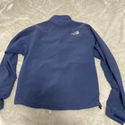 Stay warm and stylish this Winter, Fall, and Spring with this Men's Blue Windbreaker Jacket from The North Face. Made from durable polyester, this jacket is perfect for all your outdoor activities. The jacket is a size small and has a regular fit. The jacket features a full zip closure, two zippered hand pockets, and adjustable cuffs for a comfortable fit. The North Face logo is embroidered on the chest, adding a touch of style to the jacket. Perfect for any adventure, this jacket is a must-have for any outdoor enthusiast.