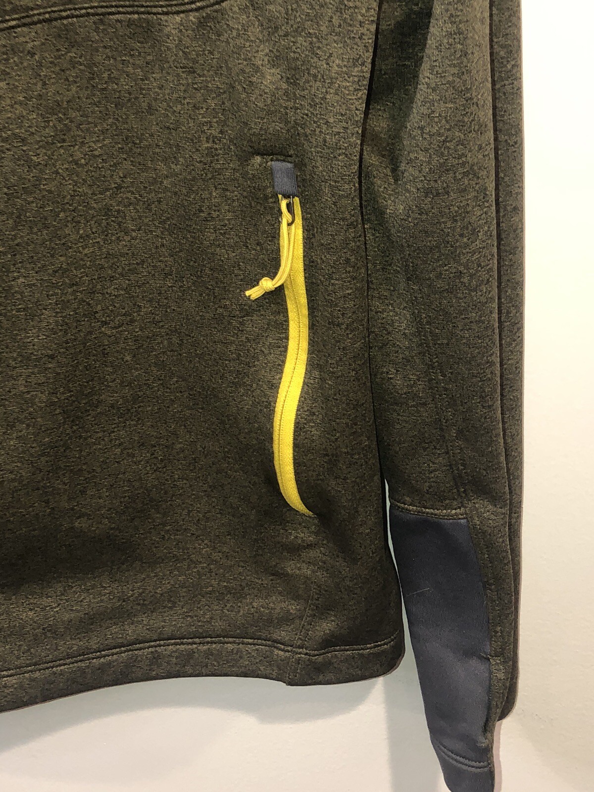 This North Face jacket is a must-have for any outdoor enthusiast. With a full zipper and a hood, you'll be prepared for any weather conditions during winter, fall, or spring. The jacket has a deep green and yellow zipper trim contrast color and is made of durable polyester material, ensuring it will last for many adventures to come. Side zippered pockets. The jacket is designed for men and is a size medium, with a regular fit. It also has a few accents, including a zipper, making it not only functional but also stylish. Whether you're camping, hiking, or just running errands around town, this North Face jacket is the perfect addition to any wardrobe. Great condition