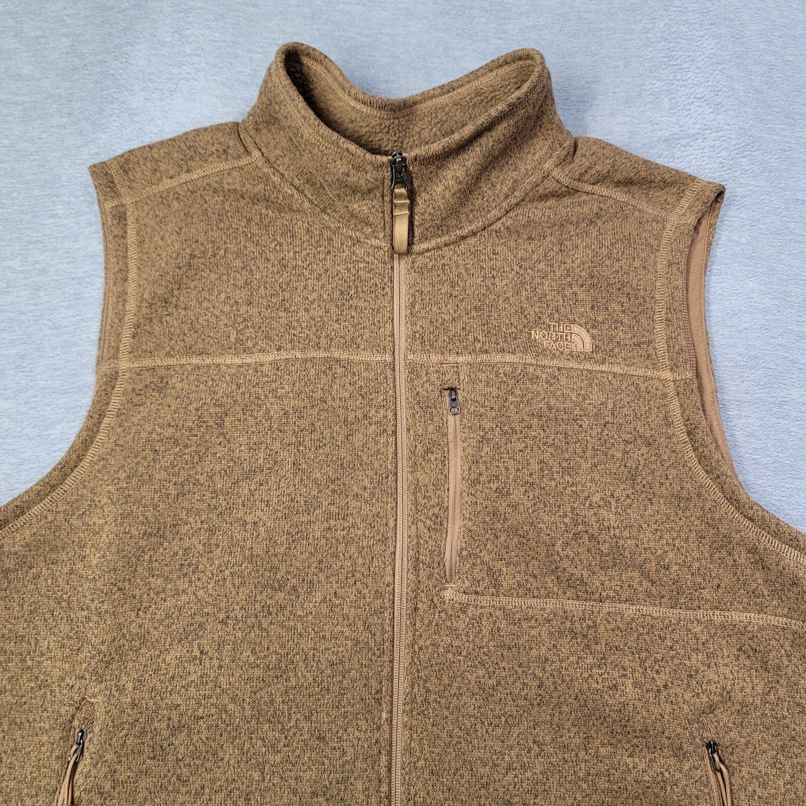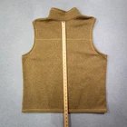 This North Face vest is a stylish and practical addition to any man's wardrobe. Made from polyester fleece, it is perfect for outdoor activities like walking and hiking. The full zip design and mock neck collar provide warmth and comfort, while the zip pockets add functionality. The classic tan color and logo accents give it a timeless look, making it a versatile piece for any casual outfit. In size 2XL, this vest offers a comfortable fit for men looking for a reliable and fashionable outerwear option.