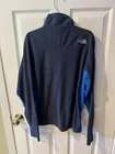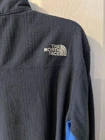 The North Face Mens 2 Tone Blue Ribbed Fleece Zip Up Jacket Size Small. Pit to pit measures approx 18 Shoulder to hem measures approx 25 88% polyester 12% elastane